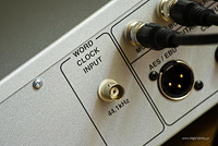 Poniżej znajdują się także 3 „klasyczne” wyjścia cyfrowe – AES/EBU, S/PDIF koaksjalne, oraz optyczne. Po lewej stronie umieszczono jeszcze wejście dla zewnętrznego zegara, a po prawej znajduje się gniazdo sieciowe.