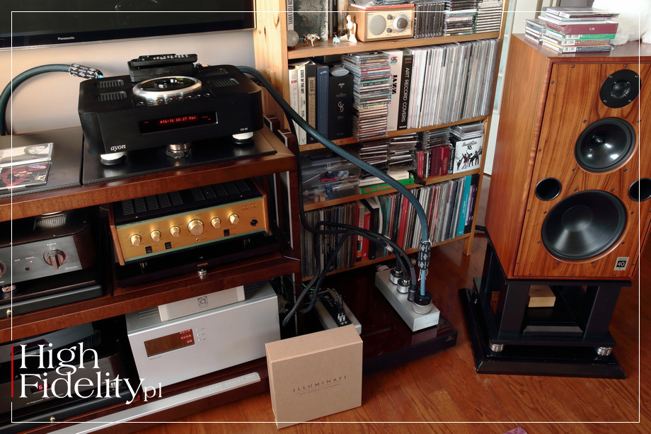 The Power Reference II is delivered in a simple but extremely nice cardboard box. Its top panel is embossed with the company's logo and its advertising slogan in purple varnish: "True Musical Experience." Opening the box first, on its top panel, we read the designer's message, in which he explains his assumptions. The cable itself is housed in a linen bag, also modest, but pretty, so to speak, with the manufacturer's logo. The lid closes magnetically, in which it resembles Sephora chain gift boxes and others of its kind. The whole thing is an eco-friendly product, as it is 92% recyclable. It's apparent that audio manufacturers already know that nothing will be the same after Jobs and Apple products, and it's worth the effort to make the product look like a gift. The cable has a considerable cross-section, but is quite flexible. It uses a conductor with a diameter of ϕ 0.30 mm x 72 and a cross-sectional area of each of the three conductors of 5.4 mm2. The cable has a thin copper foil screen which IS NOT, as the manufacturer emphasizes, connected to the PE protective conductor. And also:  This is passive shielding, much less effective than active shielding, but translates into unparalleled better sound quality. Therefore, the manufacturer recommends that the cable be placed at least 10 cm away from unshielded system components, such as signal cables, digital cables and electron tubes. Both the cable jacket and the insulator of the individual conductors use polyethylene with an additional vibration-damping material. The cable's conductors are gently twisted relative to each other to minimize electromagnetic emissions, while the cable's filling is a "high-quality pure cotton," which serves the function of holding the conductors in place and damping unwanted vibrations.   ⸜ PLUGS • I am not sure if you remember, but we actually got to know the Oyaide company through its plugs. Although in "High Fidelity" we tested (as the first magazine in Europe!) their interconnects and speaker cables, it was the company's plugs that made the brand known. And at that time it was one of the taboo topics, ridiculed by, as it turns out, ignorant people; more → HERE «PL». Today, many of the world's top companies use its products. Therefore, no reasonable person who has done such a test at least once underestimates its impact on a given design. There are cables in which it is even a equivalent element to the cable itself. This is the case here as well. The Power Reference II uses one of the latest versions of Oyaide plugs, the AC-004 IEC model, imported straight from Japan, and the Shuko Elecaudio RS-34GP plug, manufactured by MPS Audio of Taiwan. AC-004 is made of beryllium copper plated with platinum and palladium. This is a new version of the well-known and respected C-004 series plugs, available exclusively for the Japanese market, costing 46% more than the C-004 plug. The manufacturer believes that this model has comparable performance to the flagship Oyaide F1. They differ in nuances, and according to Mr. Kalicki, they are of the same class, although they accentuate different characteristics in the musical presentation. | The Elecaudio plug is made by MPS Audio. Its metal parts are made of phosphorobronze coated with a layer of silver and a very thick (3 microns) layer of gold. Its unique features are the body’s material and the extremely stable seating in the socket. It is intended to be twinned in these respects to the ETI Research Legato plug. A red dot is applied at one of the pins - it is worth ensuring that this is where the "hot" wire is connected.   The manufacturer adds that the cable is assembled by hand "with the utmost precision." The clamping force of each screw is adjusted with a torque screwdriver with a force of 1.0 Nm. The cable looks very nice, and considering the materials and components used in it, looking at how it is packaged, it is hard not to be surprised at its low price. ▌ SOUND ⸜ HOW WE LISTENED • The Audio Illuminati Power Reference II cable powered the Ayon Audio CD-35 HF Edition player (№ 1/50) during the listening test, and was compared to my reference, the Siltech Triple Crown power cable. The test consisted of an A/B/A comparison, with known A and B, using short, two-minute samples.   Both cables were plugged into an Acoustic Revive RPT-4EU Absolute AC power strip, which in turn was fed by a 2.5-meter Acrolink Mexcel 7N-PC9500 AC cable. The Acrolink was connected to a Furutech NCF wall outlet, to which a separate power line with HPA's own fuse runs. This line is made from a 6-meter section of Oyaide Tunami Nigo cable. ⸜ ALBUMS USED FOR THE TEST ⸜a selection
