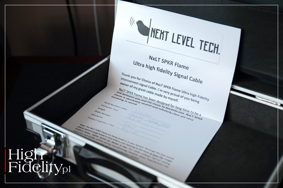 Instead, there was something else: passion, experience and time devoted to "fine-tuning" the sound of products. And this is something that no money can buy and that, as the example of Japanese manufactures, but also of the Canadian company Luna Cables, shows, can deliver excellent results. For perfectionist audio, which we usually call audiophilism, is stretched between high-tech technology and artistic craftsmanship. Technological and workshop capabilities, as well as the choices made by designers, are usually somewhere on the scale between the one and the other. And that's because manufacturers with design backgrounds also listen to their products, while mini-manufacturers benefit from the former's developments, reaching for conductors, dielectrics and damping elements or plugs from reputable companies that have somehow done the "work" for them. Both approaches have their pros and cons. ▌ FLAME SPKR-S FLAME SPKR-S SPEAKER CABLES are sold in small metal boxes, with the company's logo on them - the same as the interconnects. The reason they managed to fit inside is that they have a small diameter and are flexible. | A few simple words… ROBERT SŁOWIŃSKI LET ME BRAGG A LITTLE - I have seven testers of my prototypes in the US , Europe and Asia (emphasis - ed.). They have different systems and musical preferences. One of them is also an official tester of the dCS company (I saw at his place probably three versions of the successor to the Vivaldi series). Five of them bought my "inconspicuous" SPKR -S (2 x bi-wire), even though they can afford Tara Labs, Siltech, TC, etc. cables. In my system I also use TC cables as a reference.   ⸜ ROBERT SŁOWIŃSKI in front of company’s new headquarters I worked on these cables for two years, and I will say frankly that more than once I felt like abandoning the project. But it was the aforementioned "testers" and friends that somehow kept me going, to try one more time, but maybe differently. In total, as many as fourteen different prototypes were made, sets for seven testers, and four final sets. As the testers said, it took the longest in the brake-in process of these cables to hear the opening of the upper part of the band, the appearance of the contours of the sound, the organic feel and "pure magic". It's worth mentioning that all the cables are broken-in using a specialized machine in my shop before they are shipped, but they still need a minimum of 72 hours to "settle" in the system and show their true face. I analyzed all the feedback from the testers and wrote down everything that repeated in all of them. And one more thing - in two systems with, among others, TAD Reference ONE speakers, the bass and differentiation of this range, as well as the readability was, in their opinion, of a reference level. One of them wrote that he didn't know that his TAD speakers and Accuphase P-7300 amplifier were capable of such a thing, even though he had previously used high models of Synergistic Research's cables.   ⸜ The designer in his new office I should add that I recently completed the construction of the company's new headquarters, which took me as long as two years. It has already been in use for nine months. It contains a 36 m2 room dedicated to audio with two systems; the systems are being currently installed. The new workspace is also still in the process of installation. OK, the break time is over, I have to get back to work ;-) RS FLAME SPKR-S CABLES were developed as a result of many trials with various cables produced by major manufacturers and according to their own proprietary topology. These are cables in which each of the runs, that is, "positive" and "negative," are run separately. So in the box we get four separate cables, two per channel. Halfway their length heat shrink sleeves are applied with markings indication the direction of connection. It is also indicated by the logo of a bird (colloquially called "nightingale" by the owners of the cables, which is also a Polish derivative of the name of the NxTL owner). The name of the Flame cable (the lower AIR and Water series will be ready in 1-2 months) includes the following information: SPKR = speaker, S = single wire. As the manufacturer says, the "S" version will be the highest one, because "if someone can afford it", and uses a bi-wire connection in the system the assumption is that "he buys two sets of SPKR-S and uses two sets separately. It is also possible to add a so-called bi-wire spur, to the existing cable, if that is what the customer wants, and does not need a double run. This is a cheaper alternative to implementing bi-wire. For that you have to add €283 to the price. The cables are constructed of twisted pair of conductors made of red OFC copper. Each consists of ten thin, individually placed very thin wires in the dielectric. The wires are cold-rolled (formed) and cryogenically frozen and thawed according to NxTL's proprietary procedure, which takes, as we read in the materials sent to us, as long as five days. The dielectric is polypropylene with a foam structure. The cable is double shielded. They use inductive soldering for the plugs, and use custom solder. As the designer says, it is not generally available. In addition, the cables are tightened with screws using a torque screwdriver, that is, with a selected force. The company that manufactures these custom cables to NxTL specifications is a German specialist.   As the designer adds, he prices his products "not that expensive, relative to what other manufacturers offer," because he is "a beginner and prefers a VW- BUS rather than a Rolls Royce Phanthom." His idea here, he adds, is to make his products accessible to a wider range of audiophiles and music lovers. Despite the extremely low price, the cable is terminated with very cool, convenient-to-use plugs from Oyaide: SPSL spades (on the speaker side) and SRBN bananas (on the amplifier side). However, the user can choose any combination for himself. The prot
