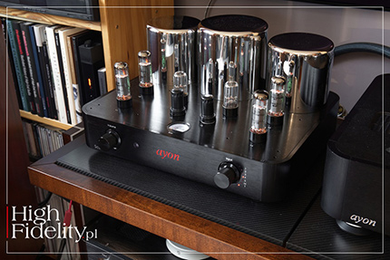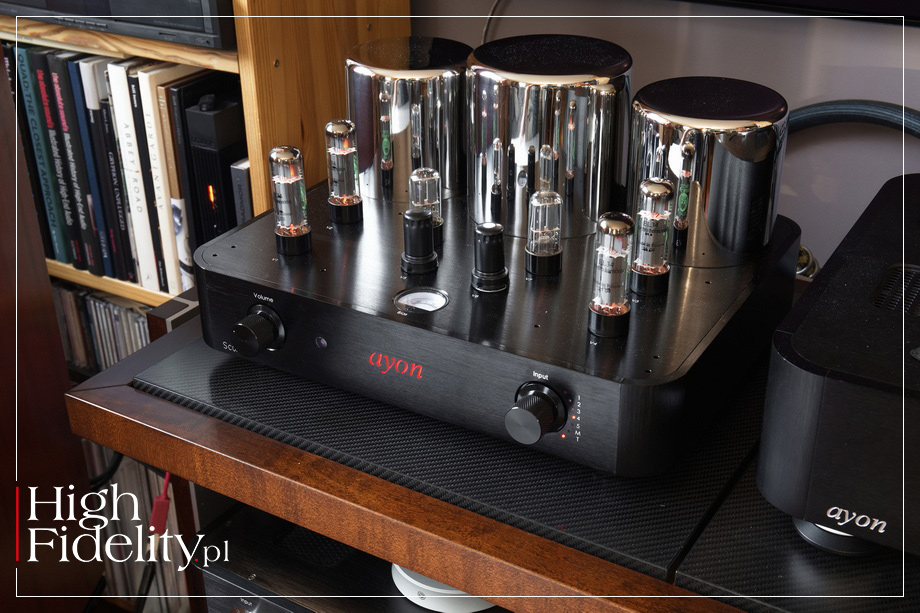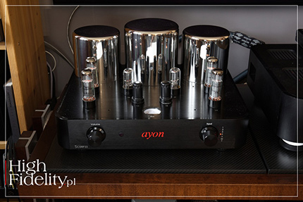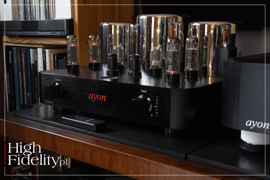 THE AYON AUDIO SCORPIO III INTEGRATED amplifier is the second one from the bottom of the price list of this manufacturer's amplifiers. And yet - one of the most important in its portfolio. Although above it you will find no less than six models, with the powerful Crossfire Evo-Delta limited edition model costing almost 100,000 PLN, it is the device we are testing that is something of a “workhorse” for Ayon.   For, as Gerhard Hirt, owner and chief designer of Ayon said, the protoplast of the Scorpio series, Orion, and later → ORION II ˻ PL ˺, sold in the largest number in the history of this Austrian company. It was thanks to the money raised in this way that solutions from more expensive products could be transferred to cheaper products. In its make & finish it were the cheaper components that drew attention, particularly the black transformer shielding housings. The slightly more expensive devices were also successful. In an interview accompanying the test of the → SCORPIO II Gerhard said that already in this amplifier he returned to chrome finish details, mainly influenced by discussions with his American distributor. In the process, however, much of the circuitry was changed at that time, replacing the PCBs, upgrading the auto bias circuit, equipping it with a more powerful power supply and larger output transformers, allowing the unit to be used with KT88 and KT150 tubes. Keep in mind, however, that this is an amplifier originally designed to work with EL34 pentodes, the most classic amplifier tubes in the history of music. In its basic version it is available with just them, but - for an extra charge - you can also order KT88 flux tetrodes or even the mighty KT150. But... Have I mentioned to you before that I am a devoted EL34 fan? I'm sure I have, just take a look at the tests of the amps such as → LEBEN CS600X and → KONDO OVERTURE II. In my opinion, it is with it that the Scorpio III captures all its magic. ▌ Scorpio III THE TESTED AMPLIFIER features a classic Ayon look. Gerhard developed it years ago and is faithful to it. He makes adjustments to it from time to time adding either mottled knobs, or LEDs, or some other elements, but it's still the same design. In the new device we get a vintage-style VU meter for bias current, visually referring directly to the 1940s or 50s. Previously available in Ayon's more expensive products, it lands in these lower price regions for the first time. Other than that, the Scorpio III looks identical to its predecessor, the “II” model. The fact that it is a new model is indicated only by a stick-on name on the rear panel masking the older one. Components have changed, the auto-bias circuitry and other elements have also been redesigned, but in their basic form they are very similar products. The new Ayon Audio amplifier is a tube integrated amplifier with a solid-state power supply. The unit offers four RCA line inputs and, as an option, one digital, namely USB port. The latter accepts PCM signals up to 32 bits and 384 and DSD up to DSD256. A remote for volume control is also optional, and it features also a “mute” button. TUBES • All tubes, including the output tubes, operate in class A, without feedback. The input signal is amplified by 6Ж8 tube. This is the Russian equivalent of the 6SJ7, an octal pentode invented back in 1935. The one in the Ayon has a metal rather than glass bulb to protect the signal from interference. The units used in the Scorpio III were manufactured in the Soviet Union. Also from the USSR come the phase inverter tubes and the tubes that control the output tubes. These are dual octal 6H8C (6SN6) triodes. The output stage operates in a push-pull mode. In the basic version, its base are EL34 tubes, a pair per channel. Starting with the Scorpio II model, however, we can also choose other, more powerful KT88 or KT150 tubes. Each of them sounds different, but when choosing them the thing will be more about the output power, in the given series getting higher and higher. Thus, with EL34 we will get 2 x 38 watts, with KT88 we will get 2 x 43 watts, and with KT150 we will get as much as 2 x 50 watts. That is in the “pentode” mode. This is because the amplifier allows changing the operation mode of power tubes. As we know, pentodes can be “forced” to operate as if they were triodes. Here a small button on the rear panel serves this purpose, and the change is indicated by an LED on the front of the unit; by the way - all the LEDs, as well as the illuminated company logo, are red - what a relief. If you select triode mode, the maximum output power decreases. After all, pentodes, as well as beam tetrodes, were invented precisely because of their higher power output. Ayon then offers 25, 30 and 35 watts, respectively. AUTO-BIAS • Tube amplifiers are perceived by much of the audio community as difficult to use. Mainly because of problems with the tubes. In fact, most modern designs do not differ in any fundamental way from solid-state in terms of lifespan. Tubes need to be replaced, it's true, but quite rarely and it's a simple operation. This is helped by circuits such as those in the Scorpio III: microprocessor-controlled auto-bias and tube protection. The former automatically matches the tube supply voltages to the electric outlet’s voltage, and also corrects the bias current as the tubes age. The user can check their condition from time to time and read the indications on a small LED display on the rear panel. This circuit also provides a “soft” start, extending the lifespan of the tubes, as well as protecting them from overloading, so - again - extending their lifespan. The latter is also helped by an anodized non-magnetic chassis, hand-assembled from brushed aluminum, refined to better dissipate heat from the working tubes.   The device is superbly made. Powerful dual power transformers that are flooded in their housings to minimize vibration, as well as a choke are part of an elaborate