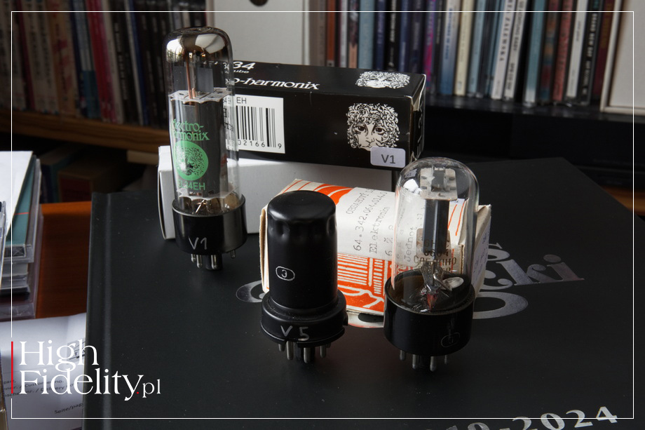 The album was created in Tadeusz's home studio. A fan of vinyl records, he records his music digitally. In doing so, he uses a DAW workstation called Audacity. It's an open-code based audio recorder and editor. The tracks were recorded by Tadeusz Luczyka in 16-bit resolution and at a sampling rate of 44.1 kHz. Guests recorded their tracks in other studios. In multi-track form, they were sent to Warsaw, to MARCIN BOCINSKI for mixing and mastering. He mastered Aquavoice's previous albums at his LEGATO MASTERING studio, but is known for many other projects. The sound of this album is extremely mature. Dense and deep, but also resolving. If we think that this is not a high-resolution signal and that the artist is recording music in “CD quality,” we will come to ask ourselves what the point is. And it's simply about good sound at the input, which is not entirely dependent on the resolution of the material. In its processing - yes, the more, the better, but the recording itself does not have to have a “hi-res” stamp. Think back to the Denon label albums, Brothers in Arms by Dire Straits or Ray of Light by Madonna - they were all recorded with the same parameters, 16/44.1; more → HERE. Flow is presented perfectly. Spatial, deep, with guest tracks usually located quite far in the mix, on a long reverb. Closer shown is Stasiuk, who sounds like he was recorded on an inexpensive recorder. His voice is dark and lacking in higher registers. these, however, are overlaid by the sound of the river. And the vocal itself has a high volume, is dark and deep. It's also wide, provided by sounds that ring out not so much “in the speakers,” but wide behind them. Generally speaking, it's a presentation that pulls away from the speakers. And it is superbly balanced tonally.   After the dark Butterfly House with the author of Mury Hebronu as narrator, there comes the Flow, which builds bit higher in the range. Yes, still with low bass, but also with high energy in the midrange. But even then, we have a feeling of being immersed in this presentation. And when, as in Chrome, a low sound comes in, reminiscent of 1960s analog synthesizers, it's darker, denser, amazing. This is quiet music, almost contemplative at times, but with an inner energy that carries it. A musically wonderful album with a great sound! ● Sound quality: 10/10 Award: ˻ BIG RED BUTTON ˺. THAT'S WHAT HIGH END AUDIO SHOULD look/sound like - I'm thinking not only of the aforementioned album, but especially of the tested amplifier. With well-recorded albums we get dynamics, imaging, tonal depth and so on. On the other hand, with heavily “produced” ones, such as Californication, or the ˻ 2 ˺ Twenty Something from the Super album by the PET SHOP BOYS duo, rhythm. You see, each subsequent album played simply well cool with the Ayon, the music really turned me on. Even though it's an amplifier with a very resolving sound.   Resolution, however, manifests itself in its entry into the depths of the presentation, not in its illumination. And if the production is a high end one, if the music is high end, and if the system around it is equally high end, then it doesn't matter how an album is recorded. Yes, Super was bit dull, somewhat closed in, without an open midrange and with a distorted treble, as was Californication. But it didn't matter. Because it SOUNDED WELL. The amplifier perfectly handles the bottom end, so that the presentation has momentum and power. This is not another “hi-fi” amplifier, but a device for music reproduction. And that's how it will be perceived with any album. But know, that when you play some top-notch recording, then you will relax, smile and - I hope - understand what I mean and why EL34 tubes are almost a fetish for me. In my case it was the MAYO NAKANO PIANO TRIO’ Miwaku, released by the Briphonic label on an Extreme Hard Glass CD-R, recorded from DSD master files. It was with it that I heard that the amplifier is not only dynamic, resolving and plays with strong bass, but also renders an excellent soundstage. It brings it closer to us, but without pulling up the back of it. This results is a deep panorama with widely spaced edges. But not being artificially blown up. In the Ayon's sound, it is possible to point out an emphasized bass sub-range responsible for the slam of the kick drum, and you can hear that this is a deliberate choice of the designer. It is thanks to it that the device plays with flair, with power, and the scale of phantom images is presented very well. This is not a warm, syrupy presentation, but one with proper power, energy, and drive. And yet, and yet the presentation is unequivocally warm. This is due both to the power pentodes used in this device, that’s what they do, but also to their application. Gerhard didn't fight them, didn't try to make KT tubes out of them, but simply let them play.   TRIODE vs PENTODE • And yet we can still choose whether we listen to this amplifier in pentode or triode mode. When testing Ayon Audio amplifiers equipped with a triode/pentode switch, I almost always chose the latter position; in the case of KT tubes, it's a beaming tetrode, but it's accepted to treat it as a pentode. I did this against the widespread view in audio according to which “triode is the one and only right choice”. My experience says quite the opposite: triode - yes, but rarely. The same is also true this time. Scorpio III in the triode mode will give you a excellent saturated presentation with a close foreground. With soft bass, delicate, golden cymbals and high energy; energy is what you get in both modes. But it will also be a less transparent, less dynamically differentiated sound. As well as less selective. And the lower end of the band will be a bit “sluggish.” I have the impression that the choice of triode mode, not only in the amplifiers of this company, but in general, in many cases is dictated by the desire to mitigate the problems of pentode mode. He
