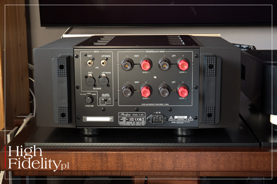 I DO NOT REMEMBER A SITUATION LIKE THIS, i.e. one related to an “S” added to the symbol of a device by the Japanese company Accuphase. Just to be sure, as memory is not reliable, I reached for the "Product museum" tab on the manufacturer's website and it turns out that I was wrong about being mistaken. In the past, in the 1970s, 1980s and partly the 1990s, the company differentiated its products like that, attributing an additional letter to the symbols of previously produced devices. As far as power amplifiers are concerned, the letters used were “S”, “X”, “L” and “V”, as in the P-300 amp, “V” in the A-20 and A-50 models, “A” in the E-250 integrated amp, or “B” in the CD DP-90.   If we were to pay attention to what kind of products these are, and note that the new versions were created every three or four years, we might be tempted to make some assumptions that would allow us to understand how these particular products differ from other Accuphase devices. The P-300 power amplifier was the first product treated with such attention and its design was modified the most. It was the premiere product of Accuphase, then still Kensonic Laboratory, so it was especially significant to the company. Therefore, my first guess is that it is all about attachment, and thus emotions. My second guess is purely technical, however, as it can be added with a high degree of probability that these are products whose design was so successful, so perfect, perhaps even futuristic, that its change to a completely new one was simply impossible in this period of time. After all, the manufacturer introduces new models on a regular basis, but only when it manages to significantly improve at least a few technical aspects, e.g., widen the frequency response, reduce distortion or noise, increase output attenuation, or sometimes improve functionality. So, this would be a reason related to a cool view of the matter, i.e. intellect The A-48S, if we agree with what I wrote above, would thus be a power amplifier whose basic model, launched in 2019, i.e., six years ago, proved difficult to replace and close enough to its creators that they decided to make important, but not crucial, changes to its design, thus keeping its name. At the same time, this would be the first such case in this company in twenty years, as the last “tweaked” power amplifier was the A-20V model from March 2000. ▌The A-48S LET'S START FROM THE BEGINNING. The A-48S is a stereo power amplifier operating in class A, push-pull mode. It yields 50 W at 8 Ω, i.e., 5 W more than the A-45, doubling it at a 50% decrease in impedance. So, that would be 100 watts at 4 Ω, 200 at 2 and as much as 400 at a 1 Ω (!) load. The device can operate in both stereo and mono modes; its power then rises to 800 watts at 2 Ω. At the same time, the manufacturer points out a 6% drop in noise, compared to the original, and an increase in the damping factor by as much as 25%, to an exceptional level of 1000. It retains the most important solutions known from other devices with the Accuphase logo, such as class-A operation, balanced circuitry, current feedback with balanced equalization signal routing, instrumentation amplifier topology, MCS+ multiple summing circuit, output relays on MOSFET transistors, and sophisticated overload and short-circuit protection circuits. I don't even mention the layered, very solid chassis and high-carbon steel feet.   Even though the device has the same dimensions as the A-48, it weighs two more kilograms. It's probably about a larger transformer, since the power amplifier has an almost identical design. The signal path is fully balanced and has been designed using a technique called Instrumentation Amplifier. This is a type of a circuit that allows for a high common mode rejection ratio (CMRR), yielding high precision amplification. This is one of the key techniques of this manufacturer. It is still an amplifier working with six parallel MOSFET transformers per channel in the current section and bipolar transistors in the voltage section. In doing so, the company's engineers focused on a special way to divide the overall gain between the two sections. The former amplifies it 12.6 times, and the latter just twice. The company materials read that “allocating high gain (12.6×) to the input section drastically reduces output noise.” A very important parameter that engineers from this Japanese company pay attention to is as low output impedance as possible. It translates directly into a parameter called the damping factor, describing how well the amplifier handles the speakers, how well it controls them. For the last two or three generations of amplifiers from this company, shorter and shorter signal paths and output protection based on MOS-FET transistors are supposed to be responsible for its increase. This is the case with the A-48S as well. The amp still looks like a classic Accuphase device: a gold front panel, large outgoing VU-meter indicators, balanced and unbalanced line inputs, absolute phase change for XLR inputs, and large custom-made speaker terminals - here double, allowing bi-wiring. There's also optional gain change, making it easy to match it to a particular system. Setting the switch to lower levels reduces noise. Accuphase wouldn't be itself if it hadn't gently remodeled the shape of the buttons. Both the power and input change switches are now more angular than before, the latter now square rather than round. On the rear panel, next to the XLR input polarity switch, there is a switch with which we set how the power amplifier is supposed to operate. The standard setting is “Normal”, which means the device working as a stereo amplifier. On the right is the “Bridge” setting, in which the amplifier is bridged and works as a mono monoblock. And on the left is the “Dual mono” setting, which also makes the amplifier work as a monoblock, but not in a bridge, but with two separate amplif