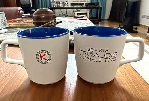 ⸜ Tomek, our host, in kneeling position, known from medieval iconography... As you can see, the meeting was special for many reasons. First of all, because of the topic, which is rarely researched. Secondly, because our guest was Gerhard Hirt, who brought with him a one-of-a-kind device and unique knowledge. Thirdly, we had another guest – Roman Nowak, owner and head of NAUTILUS WEJHEROWO ATELIER, who visited us for the first time. And there was a fourth reason to celebrate: it was the 30th. KSS meeting at this location, i.e. at Tomek Folta's place, for whom it was a good opportunity to officially present the logo of his new company → AUDIO-CONSULTING TOMASZ FOLTA. ▌ SOUND HOW WE LISTENED • The listening session took place at Tomek Folta's using his system, where the signal source is the AURENDER N20 file transport ˻PL˺ digitally connected to the Kronos Signature digital-to-analog converter. At its output, there is a volume control with a tube circuit without an output buffer, which Gerhard mentioned earlier. The balanced signal from it runs via interconnects to the Accuphase P-7300 power amplifier.