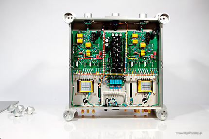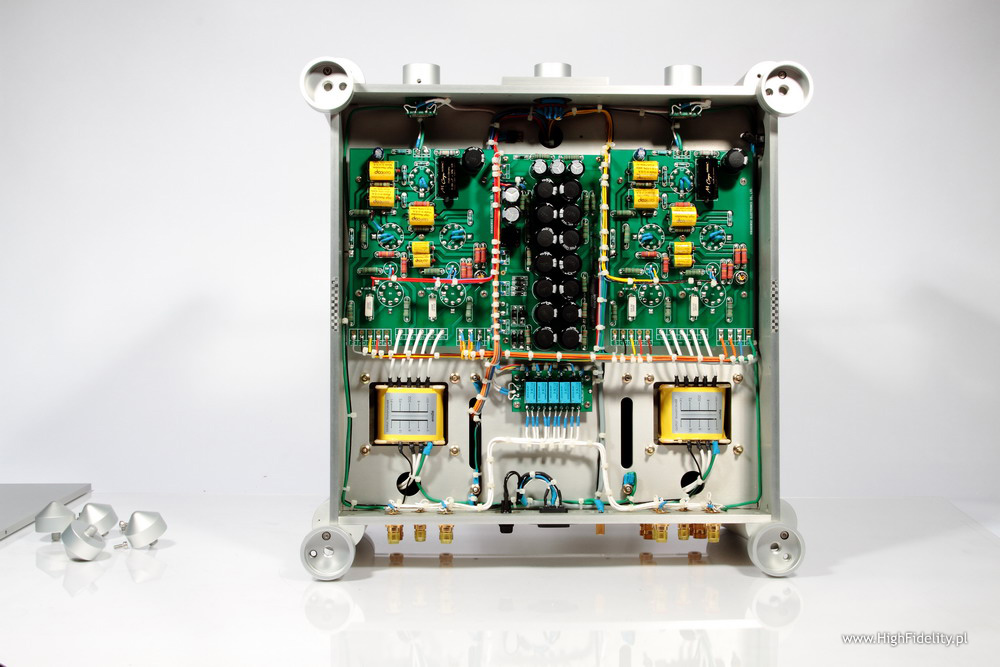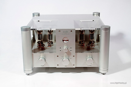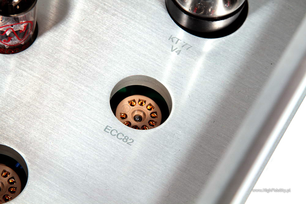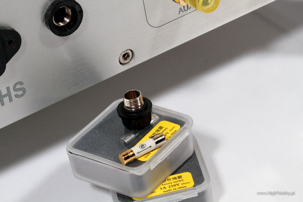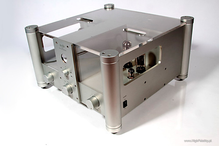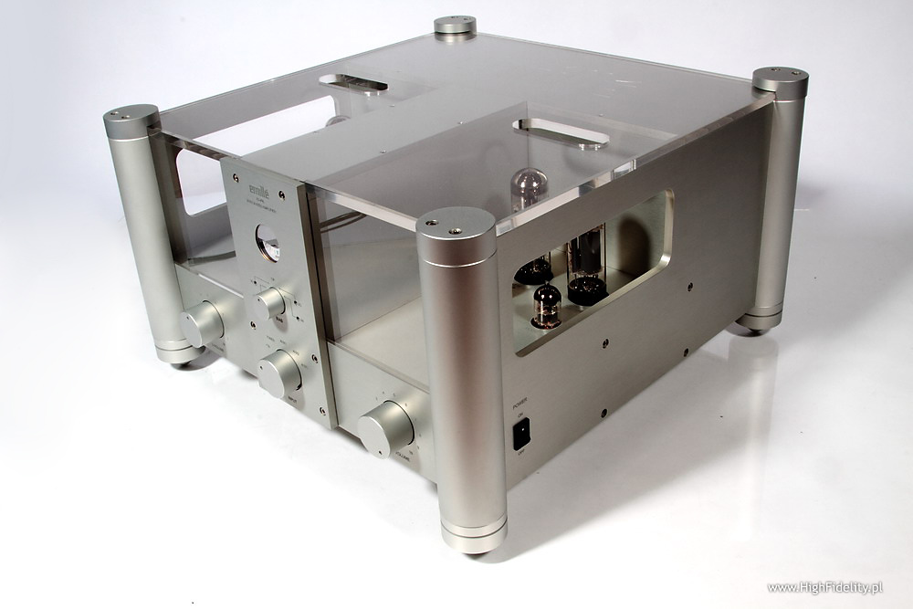 Creatè Audio 3A fuse As I mentioned before there is a way to improve the sound of Emillé amp. I realize that some might recommend starting a therapy after I recommend listening to different kinds of fuses but I would still recommend a simple, and quite inexpensive test. The improvement will not be significant but worth trying. Synergy HiFi, a manufacturer of tubes and fuses sold under Creatè Audio brand sent me some of them for tests (check HERE and HERE), so it I couldn't help myself and had to try also with Emillé. KI-40L is equipped with a 3,15 A fuse – Chinese manufacturer offers two different values: 3 and 5 A – I chose the lower one. Well … the difference was audible immediately – before you send me to shrink try it yourself. After that we will have an open ground for discussion. This slight coloration of a midrange disappeared and the resolution of sound in general improved. Objectively these are not very significant changes but after you get used to the sound of this extraordinary amplifier even such a small improvement will be highly appreciated. For me the biggest audible difference showed in the bass range resolution and its „energetic efficiency”. With Creatè Audio fuse installed bass range seemed better organized, and the room's acoustics interacting with Haden's bass on Heartplay was absolutely amazing. SummaryI didn't mention much about treble or bass as it wasn't really important – the way this amp sounded didn't really encouraged me to analyze particular parts of frequency range, as it offered a complete and coherent presentation influencing mostly emotions. Both frequency range extremes are simply damn good – strong with great resolution, very well projected to the soundstage. Upper bass is bit emphasized but it only makes the whole presentation more palpable. The whole presentation doesn't impress at first with resolution – but the resolution is more than all right. It manifests itself in a different, not so direct way – not by incredible numbers of details but rather by extremely good interaction between all elements. The most important part of presentation is of course midrange but not because there is something wrong with treble or bass, but because midrange is the range that human ear hears best. This amplifier has of course some limitations – most important is its not so big output power. In my room (around 29 m2 and with the listening spot quite close to the speakers) is was more than enough. If you have a bigger room you are going to need speakers offering sensitivity higher than 89 dB and more friendly impedance than 4 Ω. I would call this amp user friendly as it doesn't have remote control and there is a separate pot for each channel but the sound it offers is outstanding. DESCRIPTIONKI-40L is a tube integrated amp, but not fully “tube” as the power supply is solid-state. There are different opinions on the subject. I personally watched the evolution that started from GZ34 tube rectifier and ended in solid-state power supply in Ancient Audio Silver (now called Silver Grand Mono). And I must admit that SS is beyond any doubt a better one but for this particular device – I wouldn't make a general conclusion out of it. KI-40L works in push-pull setup with KT-77 power tubes (these are beam tetrodes - KT = „Kinkless Tetrode”). First version of this amp used tubes made by Slovak JJ Electronics and I still got this version for test. But a week later I received information from company's European representative - Mr Vital Gbezo – that while still keeping the same price for amplifier, manufacturer decided to offer other, more expensive and more reliable tubes made by Genalex, from Golden Lion line. These tube are made only for Emillé in factory in Russia. In phase inverter circuit there are JJ's double triodes ECC82 though, same tube is used in the first gain stage, and ECC81 in a input buffer. There are orange LEDs under triodes the lit up even before tubes do. All tubes are hidden under transparent covers, that fulfill European Standards safety requirements. I think that this idea might come from Japanese manufacturer - Wavac but it doesn't really matter who came up with this idea first – the point is that this is a good solution. If I remember correctly Wavac used glass cover similar to those in extremely expensive amps The Lars Mk II by Engstrom&Engstrom. But these are dozen times more expensive than KI-40L. Anyway these transparent covers look very good and fit with large aluminum surfaces nicely. Chassis is made of 8 mm thick aluminum slabs. This chassis is quite different from everything I ever saw before. Front panel is far from being typical with two “towers” in the corners and a central “saddle” separating the left and right valve decks which offers space for power tubes bias meter, four bias adjustments and a know that allows you to choose one of the power tubes. Below there a input selector, and volume attenuators at its both sides – one for each channel. I can't help me complaining a bit. It is a solution Emillé Labs use for its products as they are full dual-mono designs and as such we need to accept that. But on the other hand setting volume for each channel separately is not too comfortable especially that there is no remote control. The solution exists – you can control both channels with one know – it could be mechanical or electrical solution (an example – TEAC uses its own solution in its DAT and Compact Cassette devices). But that was just a digression – if you buy KI-40L you buy the whole idea behind it and you should not complain. Amplifier sports four adjustable aluminum spikes placed in the four corners of the device below those corner columns. There are two sets of speaker binding posts – separately for 4 Ω and 8 Ω. Below you will find (also separately for right and left channel) connectors for five RCA inputs. All of them look very solid, they are gold plated and they bear no m