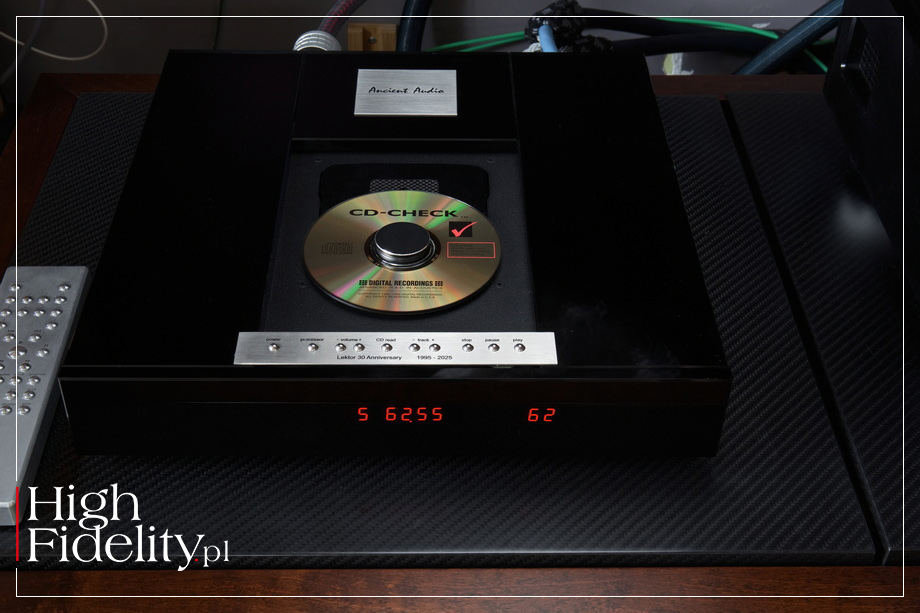 This is, in general, a CD player that celebrates bass. Its sound is not bass-heavy, but it is based on that range. When we hear the bass line played on a Minimoog synthesizer, programmed by Anthony Marinelli, in the next track on the album, ˻ 2 ˺ Baby Be Mine, it is cool – dense and low. The vocals, as before, have no clear contours, they are more of a blur than a distinct shape, but that's how it was recorded. Importantly, in this quest to weigh down the sound, I found no trace of Jackson's voice be-ing muffled. It seems that the drum machine is also the basis for the sound of MADONNA's song ˻ 1 ˺ Music, which opens her eighth album of the same title. Described as “a song in the electropop, disco, electro-funk and dance-pop genres in a static G minor key,” it has a hypnotic rhythm, similar to Jackson's Wanna Be.... And yet it is a completely different sound – open, dense, low. The anniversary Lektor showed this difference, which is obvious, as we are talking about a high end device. It also presented it in its own way. When the low bass came in at 0:40, the player deepened and complemented it. It didn't drag it out or flooded everything with bass, but it did go in the direction of complementing or enriching the lower range. It was interesting that the strong cymbals remained strong and slightly in front of the mix. But Madonna's vocals were also clear. In this warm sound, there is a lot of information that “carries” the sound. Like when, just before 2:40, the rhythm stops for a moment and the sound begins to come from behind our heads – the Ancient showed this with grace, effortlessly. And precisely. This is a sound with an enlarged foreground that is being moved toward us. Not by much, without af-fecting the coherence of the sound, but still. That is why Shohji Yokouchi's acoustic guitar, accompanying TAKESHI INOMATA's drums on his album Dialogue in a song with the surprising title ˻ 5 ˺ The Dialogue With Guitar, was so powerful, so full, so cool. It was ener-getic playing, not audiophile nonsense. Because this is not that kind of album, even though Japan is widely known for testing audio equipment in its most sophisticated form. Although imitators of this album distorted the idea of albums with jazz dialogues, which audiophiles now listen to, listening to it on a device such as the Lektor 30th Anniversary shows that it was about the meeting of two personalities, not about the sound itself – the incredible sound here is the result, not the goal. I heard this in the dense and “gutsy” sound of guitar and in the powerful sound of the drums. Both instruments were closer to me than with the Ayon player. And it's not that I was comparing the SACD (Ayon) and CD (Ancient) layers, although I was, but about the real difference. The Polish CD player is for those who appreciate the tangibility and energy of sound. With the new Lektor, they will get not only that, but also fullness. The entire mid-low range is dense and warm. This translates into a large sound scale and exceptional energy. These sound characteristics can be heard not only in pop and rock music, but also in top-quality productions such as the aforementioned album Dialogue by Audio Lab Record or the wonderful, almost transcendental album All In My Mind by DR. LONNIE SMITH. This album was released by Blue Note Records on the occasion of the organist's 75th birthday, although his age is absolutely not “audible.” Perhaps only in experience, in the remarkably dense sound of the Hammond B-3 organ. The recording was made at the Jazz Standard club in New York, although the audience is not often heard. The energy of the performance is outstanding, which the player from Krakow reproduced as fullness, density, darkness, lowness, and “bigness.” The cymbals and higher components of the organ sound were strong and almost biting, but also sweet, which is one of the characteristics of this device. The guitar sounded similar at the beginning of the second track on the album, namely ˻ 2 ˺ Devika. It had a low sound and was large, even though the guitar amp was shown from a certain perspective, in a fairly narrow strip of space (the space is generated by the distri-bution of percussion across channels). But even this narrow section vibrated with energy and swirled with emo-tion. You didn't have to listen closely to hear the details of the performance, because this is an exceptionally high-resolution player. Except that it is moderately selective. Forget about clear boundaries between sounds, razor-sharp edg-es, and hard, relentless bass hits—that's not how it is. The tested device has completely different priorities, and precise, expressive presentation of instruments, sounds, and layers does not belong to them. Differentiation is achieved here by color and dynamic resolution, not by leading edge and attack. PREAMPLIFIER • Doing away with an external preamplifier and relying on digital volume control changes the sound in several ways. First of all, it is more open. It's not a big change, but it's there. The high drum sounds on Dave Brubeck's quartet album Time Out were brighter and clearer. Paradoxically, they also had less energy. The bass was less saturated, but also slightly less con-trolled. It is therefore worth remembering that when connecting the Lektor to a power amplifier, it should be more contoured than warm. The midrange saturation was also lower. However, it is very strong in this device, so none of the densi-ty of its sound was lost. If we want to get the most out of it, an external preamplifier is required. Without it, the sound will still be rich, but less so. By adding some cool, active device with analog volume control will get us more ‘meat’ and density, that's for sure. But you will have to pay a lot for it to make sense.