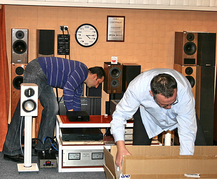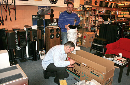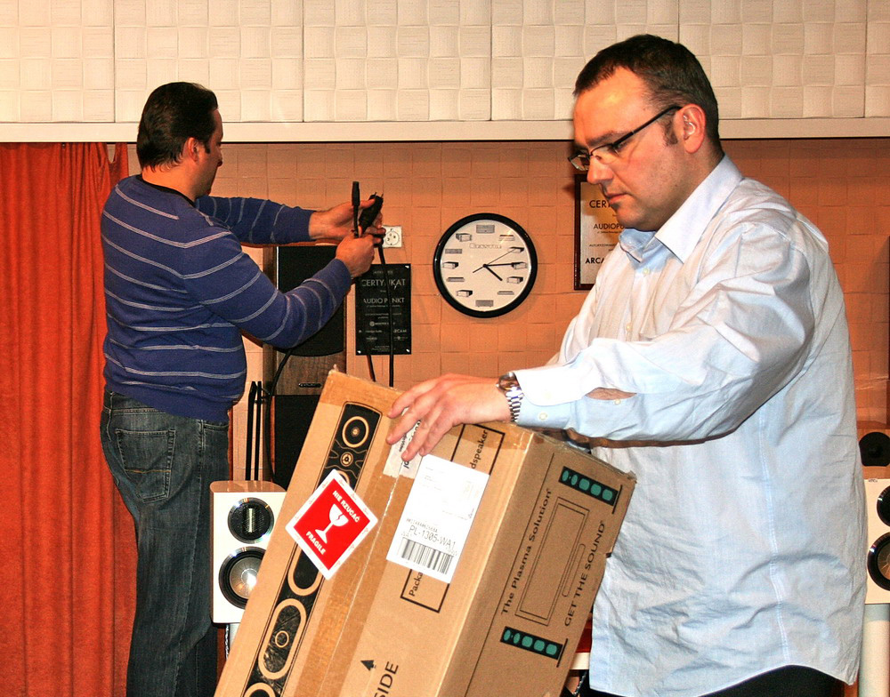 Chcąc zachować pełen profesjonalizm, razem z Jarkiem i Arturem chcemy, aby sam zainteresowany po wejściu na prezentację zasiadł wygodnie przed prawidłowo ustawionym i skalibrowanym zestawem, mogąc ocenić jego walory. Nie jest wskazane, aby Gość sklepu patrzył jak przemykamy z kolumnami, wzmacniaczami czy zaplątanymi między nogami kablami pakując po drodze przesyłkę i rozmawiając do tego przez telefon z kurierem. Podczas takich chaotycznych zabiegów nietrudno jest o uszkodzenie sprzętu.