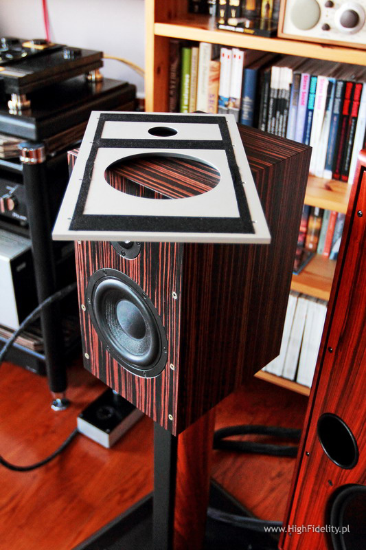 Jeszcze raz: brzmienie B10 można określić jako kremowe. Trudno jest wskazać pojedynczą przyczynę takiego stanu rzeczy, to raczej wiele różnych elementów, które połączone ze sobą dały taki, a nie inny dźwięk. Na pewno częścią tego jest lekkie wycofanie wysokich tonów. Kolumny studyjne zwykle niemiłosiernie tną po uszach, są zbyt ostre, a przy tym „cienkie”. Tutaj miałem bogate brzmienie, głębokie i pełne (cały czas mówię o wysokich tonach), bardzo plastyczne. Jednak bez dokładnej definicji uderzeń, wagi, wielkości. Podsumowanie Nic nie mówiłem do tej pory o scenie dźwiękowej. I miałem ku temu powód. To element, na który w studiach nagraniowych zwraca się najmniej uwagi, pracując zwykle na źródłach monofonicznych, rozkładanych w panoramie przez realizatora i umieszczanych w konkretnym miejscu przestrzeni za pomocą efektów. Nie mówię, że kolumny Burmestera nie mają sceny. W ich przypadku dźwięk ma jednak szczególną cechę, która odwraca naszą uwagę od aspektu przestrzennego: jego atak i wybrzmienie są wytłumione. Podstawowym budulcem dźwięku jest tu jędrne, pełne, dojrzałe wypełnienie. Z jednej strony daje to gładki, nienarzucający się dźwięk, pokazuje instrumenty w intymny sposób, a z drugiej upodabnia do siebie przestrzeń na poszczególnych płytach. Świetnie, że różnicuje temperaturę emocjonalną płyt, dając dźwięk bliżej lub dalej, to naprawdę cenna umiejętność, jednak powietrze między wykonawcami, za nimi, przed nimi – będzie raczej zubożone, zredukowane. BUDOWA Kolumny przeznaczone do studiów nagraniowych różnią się w niektórych szczegółach od ich domowych odpowiedników. Różnią się też między sobą. Można je grupować biorąc pod uwagę różnego rodzaju aspekty, jednak jednym z ważniejszych jest miejsce ich umiejscowienia względem realizatora. Jeśli są blisko niego, tuż nad stołem mikserskim, mówimy o monitorach bliskiego pola, jeśli są dalej, to monitory dalekiego pola. B10 to konstrukcja dwudrożna, z obudową typu bas-refleks, z jego wylotem na tylnej ściance. Głośnik niskotonowy to „custom”, wykonywany dla Burmestera. Ma średnicę fi 170 mm, membranę z plecionki włókna szklanego i płaski, szeroki resor z grubej gumy. Kosz jest niezwykle solidny.