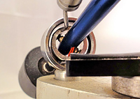 Łożyskowanie z wykorzystaniem ostrzy, to osadzenie stożkowego „kolca” w panewce.