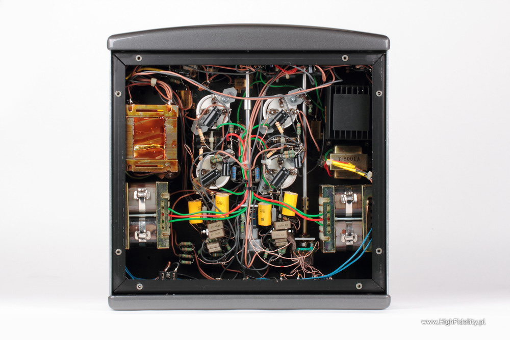 The result of that way of shaping the sound in most tube amplifiers dynamic fragments are compressed and averaged. This is not heard immediately, because usually the resolution and vividness of the tube amps mask this flaw, which almost always there – and while the mentioned Silver Grand Mono sounds different, it only confirms the rule. The lack of compression in this device manifests itself in a strong and vivid presentation of the piano. This is a special instrument, with a percussive origin, but extremely melodic nurture, this is why its example is representative here. Recordings from the disc Jun Fukumachi at Steinway (Take 2) sounded incredibly credible in the way the sound imitated the sound of that instrument in reality. Because the piano can sound on the verge of pleasure, strongly emitting the higher harmonics, which do not always sound in a comfortable way, especially when standing close to the instrument, or placing the microphones there. Most amplifiers average that element, round it off, even if the analysis of the sound does not point to that. And the tube amplifiers do it almost always. The Preciso – not.  As you can imagine, the treble is not rounded, and there is a lot of it. This resembles the tonal balance I know from Ancient Audio. The cymbals are strong, precise, they are not softened or withdrawn. They do not always sound the same, they are well differentiated, and where there is less of them, like on the discs from Savage Ten Years Ago… (Twenty Years Later…), then it will be shown like that; if there is more, like on the sampler Stereo Sound Reference Record. Nobu’s Popular Selection, then there will be more of them. Also the bass is strong. This is a rare thing in tube amplifiers, but here the lower bass, showing the work of the bass drum, with deep “breath”, the physical feeling of how the mallet hits the membrane was clear, and it is rare even with a large amount of solid state amps. With tubes in the amplifier it was shown in a similar way only with the Canor TP-106 VR+. Due to all that the Viva builds a big, strong sound and it can comfortably fill with it a room of 25m2 or more, with medium effectiveness loudspeakers (87dB). This is one thing, we usually do not associate with the 300B. And I am not only talking about the sublime, esoteric jazz discs, small ensembles but also about electronics, like from the soundtrack from the movie Tron. Legacy by Daft Punk, or the mentioned sampler Stereo Sound, or from the disc Big Science Laurie Anderson. The amplifier handles separation of the instruments with ease, showing their individual space, dynamics, etc. And finally the midrange. This part of the sound spectrum will be key for the decision of the potential buyer. It sounds different than most of the “tube” amplifiers. It is here, where the elements are, in which we pay for that, what I wrote above. Preciso is a stereophonic integrated amplifier, a tube one, with a solid state power supply. Its shape is very “friendly”  due to the rounded edges, high quality, metallic automotive varnish (many colors are available) and placing the tubes inside, in some extent. This has sense, it is not only a stylistic move, but it protects the sensitive elements of the tubes, which are prone to high frequency noise, so the sockets and things just above them are placed inside the shielding enclosure. Metal shields connected to the sockets of the first tubes at the input, can confirm that this is the right track.    It seems, that the front and back is made from varnished MDF, while the top and bottom covers from thick aluminum plates. The electronic circuitry is mounted like in classic tube devices – point-to-point. The signal goes from input sockets with short, unshielded cables to a nice mechanical switch. It was placed close to the back panel, and its axis extended to reach the front. Similar thing happened to the blue Alps potentiometer – where the signal goes from the chosen input. And then we reach the grid of the first tube, the double triode 6N1P-EB from the Russian Sovteka. This is the first stage of the amplification (or buffer – I am not sure). In the driver stage for the output tubes is another Sovtek tube, the double triode 6H30P-EB, which is also used in my CD player Ancient Audio Air. Behind it, with reversed phase for one of the tubes, we go to the working in push-pull and class A directly heated 300B triodes. As it turns out, for the American market there is a version with 2A3 tubes. Manufacturer: | ||||||||||||