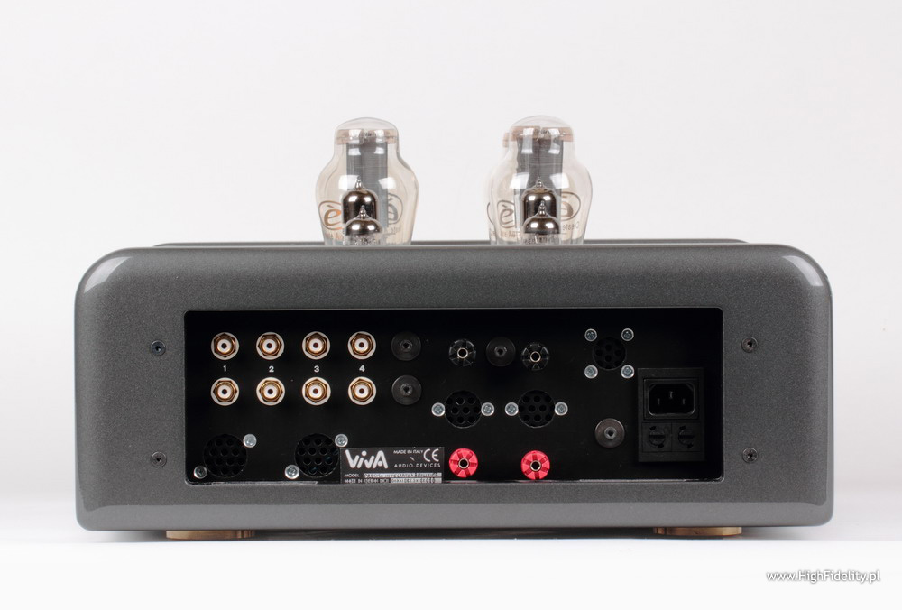 |   The company Viva Audio is Italian through and through. When I saw their products for the first time, during the High End show in Munich, I did not require anybody telling me, where they are coming from. Rounded shapes finished with high gloss auto varnish, a characteristic shape of the more expensive power amplifiers, resembling the letter “V” and tubes – the beloved amplifying elements at the Tiber banks – everything pointed to the motherland of our queen Bona.    Viva Audio is a novelty on the Polish market. We start the acquaintance from a test of one of the least expensive products of that company (although not really cheap!), the integrated amplifier Preciso, which uses 300B triodes in the output stage, working in class A, but – quite unusually – in push-pull setting. Hence two tubes per channel. The company offers also the integrated amplifiers Little Solista and Solista, based on 211 and 845 single-ended tubes, the power amplifier Verona (211 and 845), the line preamplifier Linea XL and phonostage Fono. Like I say, I received for testing the amplifier Preciso, in fact the first existing unit – this is the reason for the hole plugs on the back, etc, which will not be there in the production units. On the photo on the web page we can see, that the unit has one double triode 6H30P per channel, while the amplifier I received has two per channel – on the input the Russian 6N1P-EB and in the driver the mentioned 6H30P-EB – this is a subsequent change. The power stage works in class A, in push-pull setting, so the amplifier can drive a variety of loudspeakers. Those are direct heated 300B triodes. To have a point of reference, I made the test using the tubes Creatè Audio Golden Jazz Series, which I bough to use in such tests as a master. I asked Mr. Amedeo Schembri for a short interview: Wojciech Pacuła: Who designed this amp? WP: Is this a new construction? WP: I saw it in the Internet with one pair of tubes in the input - I received version with two of them - are there different versions of the amp? WP: You used 2A3 tubes, not 300B - is there any reason to do it? WP: At the back are many blanked holes - is it chassis for other amps too? WP: What are the main principles, technical reasons, construction details, etc. that distinguish this amp from other ones?