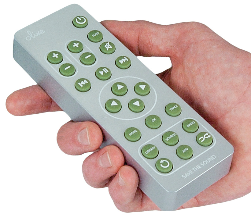 The device is controlled by a nice remote. Although it is quite big and bulky, it really fits well in the hand. Nice are also the green soft buttons. It has more buttons than there are on the front panel, because there are also volume, mute, rating and direct access to the file library ones.