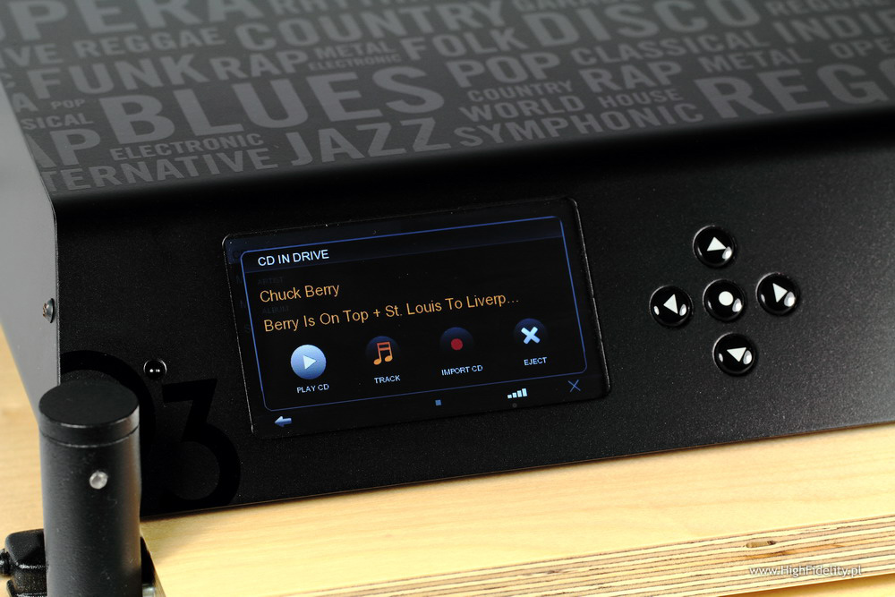 The device is really user friendly. On the display we can see the covers and titles, as well as information about the volume, time, etc. However I could not find any information about the kind of file we use (WAV or FLAC), or about sampling frequency or bit depth. Probably most users would not even notice this fact, but for me it was disturbing. Fortunately a suitable firmware update is ready, and it will be already installed in the players while you read this text. O3HDThe player handles WAV, FLAC, MP3 (128 and 320 kbit/s), AAC (128 kbit/s)16/20/24 bits, with sampling frequencies from 10 to 96kHz files. So 192kHz files are out of the question.