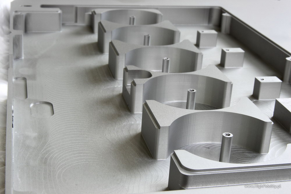 Ale jest aspekt tego wyboru, o którym już pisałem, a który być może jako pierwszy rzuci państwa na kolana: sposób prezentacji sceny dźwiękowej. Mówię często o oderwaniu się dźwięku od kolumn i muszę przyznać, że producenci kolumn, bo to o nie gównie chodzi, radzą sobie z tym coraz lepiej. Jednak takie oderwanie, jak z MSB to jest ODERWANIE. dźwięk żyje niezależnie od pokoju i wreszcie słychać, dlaczego pliki DSD są pod tym katem obłędne. Dźwięk z nimi, z sygnałem puszczanym przez USB, był ekstremalnie naturalny, Tak, był gładki, a góra nie miała aż tak dobrej definicji, jak z najlepszych plików PCM 24/192. Ale to problem technologii (kodowania), nie przetwornika. ten po prostu podchwycił dobrą wiadomość, jaką pliki niosły i ja ujawnił. Ogromna scena, głęboka w stopniu, o jakim mógłbym sobie na co dzień tylko pomarzyć i ta gładkość. Podsumowanie The Analog DAC naszpikowany jest nowoczesną techniką, a jego możliwości funkcjonalne są imponujące. To, jaki rodzaj sygnałów możemy don doprowadzić naprawdę robi wrażenie. Jeślibyśmy się jednak zatrzymali na warstwie specyfikacji technicznej, nietrudno by było znaleźć inne urządzenia tego typu, a kosztujące wielokrotnie, o dwa rzędy wielkości mniej, które mają zbliżone umiejętności, np. Light Harmonic Geek Pulse DAC za 299 USD, odtwarzający sygnały DSD i DXD. To dźwięk robi różnicę, nie specyfikacja. Pościg za jak najwyższymi częstotliwościami próbkowania, choć zapewne przyłoży rękę do poprawy jakości urządzeń cyfrowych, nie ma jednak sam w sobie większego sensu. Sygnały PCM 24/192 oraz podstawowy DSD są całkowicie wystarczające do oddania muzyki w sposób niemal perfekcyjny. Problemem są nie przetworniki i specyfikacje, a słabo przygotowane pliki. Wyczynowcy będą oczywiście się ścigali, to zrozumiałe, jednak – bądźmy szczerzy – większość DAC-ów nie ma szans na właściwe oddanie tych różnic, ponieważ ich dynamika jest zbyt niska, a szumy zbyt wysokie. The Analog DAC różnice pomiędzy różnymi plikami, aż do 384 kHz (mam kilka do porównania z firmy 2L) punktuje dość wyraźnie. Każde podniesienie częstotliwości próbkowania to mniej mechaniczny dźwięk. Ale, to dla mnie zaskakujące, najlepiej i tak zagrały pliki DSD. Wolałbym do stereotypów ręki nie przykładać, ale niech będzie: jak wysokiej klasy analog. A do tego modułowa konstrukcja, możliwość rezygnacji z przedwzmacniacza, dekodowanie dowolnych plików. Można spać spokojnie. W dzień, bo późno w noc będą leciały kolejne płyty. ![]() Formę dla swoich produktów firma MSB ustaliła wraz z systemami Platinum. To płaskie „placki” w aluminiowych obudowach, stawiane jedne na drugich, odsprzęgane od siebie kolcami. Charakterystyczne jest też wydzielenie zasilacza do osobnej obudowy. W The Analog DAC grubość poszczególnych elementów, zarówno DAC-a, jak i zasilacza, jest jeszcze mniejsza niż w Platinum. To tak naprawdę płaskie sztaby aluminium z wyfrezowanymi otworami i komorami na podzespoły. Koncept znany z innych urządzeń (także polskich – patrz TUTAJ), w MSB doprowadzony został do ekstremum. ![]()