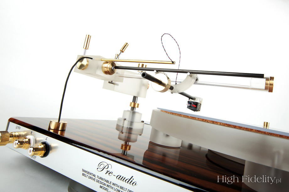 Ramię tangencjalne ma swoje zalety i wady. Wśród tych ostatnich trzeba wymienić sporą komplikację, a przez to niestabilność w czasie. Im zaś tańsze ramie, tym trudniej ich konsystencję utrzymać. I nie chodzi nawet o długie odcinki czasu, a o zmiany w obrębie jednej płyty. Doskonale pamiętam, z jakimi problemami wiązał się odsłuch gramofonu AURA i miałem obawy co do polskiej konstrukcji. Większość z nich ulotniła się kiedy dokładnie się jej przyjrzałem. To pomysłowa, sensowna konstrukcja. Pewnych rzeczy w niej nie da się wyeliminować i jedynie ramiona z powietrznym „filmem”, po którym się poruszają, są w stanie pójść znacząco dalej. Dźwięk tego gramofonu jest z jednej strony precyzyjny, a z drugiej wypełniony; wydawałoby się, że atak jest lekko utwardzony, choć tak naprawdę definicja nie jest tu priorytetem. Wypełnienie o którym mówię pochodzi z nieco podkreślonej niskiej średnicy. Szczególnie dobrze to było słychać w nagraniach, w których wokal został zarejestrowany w podobny sposób, np. na płycie Getz/Gilberto. Głos João Gilberto, niski, miękki, aksamitny, został pokazany w duży sposób, był większy niż np. gitara. Wolumen całego dźwięku był przez to spory, szczelnie wypełniając przestrzeń między kolumnami. Była to również pomoc dla Astrud Gilberto, prywatnie żony brazylijskiego gitarzysty, której dość wątły i eteryczny głos zabrzmiał pełniej, ładniej. Podkreślenie o którym mówię jest oczywistym odstępstwem od neutralności. W podobny sposób zdaje się działać Roy Gandy, właściciel Regi „strojąc” swoje gramofony. A to dlatego, że mając do czynienia z niedrogim produktem, stając przed wyborem, podstawowym działaniem jest „nie szkodzić”. W przypadku audio chodzi o eliminację jaskrawości i ostrości, odchudzenia i zbytniego pogrubienia. Konstruktorzy Pre-audio zdają się iść tym samym tokiem myślenia.