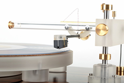Przysłany do testu model BT-1301 jest najnowszym dodatkiem do jego oferty, a zarazem najtańszym. Wygląda wyjątkowo ciekawie, estetycznie i zarazem intrygująco. Podstawa jest absolutnie klasyczna – to płyta MDF oklejona naturalnym fornirem, z zamocowanym w niej silnikiem i talerzem z akrylu. To konstrukcja bez odsprzęgania, a tłumieniu wibracji służą nóżki ze stalowymi kulkami pod spodem oraz olej wlewany do „wanny”, w której zanurzony jest silnik napędowy. Tym, co przykuwa wzrok jest ramię. To rzadko spotykana konstrukcja tangencjalna (liniowa), w której wkładka przesuwa się równolegle do rowków płyty, powtarzając ruch rylca nacinającego acetat. W tego typu ramionach całkowicie likwiduje się błędy odczytu („tracking errors”), trapiące klasyczne ramiona. Spotykamy je w drogich i bardzo drogich gramofonach firm, dla przykładu, Clearaudio, Walker Audio i Kuzma. Kilka prostych słów…