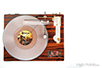 ![]() Gramofony „masowe”, tj. bez odsprzęgnięcia są na tym poziomie cenowym normą. Taka jest też podstawa BT-1301. To bardzo ładnie oklejona naturalnym fornirem płyta MDF, wsparta na czterech nóżkach z akrylu, pod którymi umieszczono niewielkie kulki. Nóżki są wykręcane i za ich pomocą ustawiamy poziom. Główne łożysko wykonano z mosiężnej panewki, w której porusza się stalowy, polerowany trzpień, wspierający się na stalowej kulce. na Trzpień zintegrowany jest z sub-talerzem, na który przenoszony jest moment obrotowy z mosiężnego wałka silnika. Asynchroniczny silnik zanurzony jest w oleju syntetycznym, mającym redukować drgania i niwelować szum towarzyszący jego pracy. Tego ostatniego nie udało się tak do końca wyeliminować i pracujący gramofon nieco słychać. Napięcie zasilające (230 V) doprowadzamy bezpośrednio do gramofonu. Zmiana prędkości obrotowej dokonywana jest ręcznie. W przyszłości warto się więc zaopatrzyć w jeden z dostępnych na rynku elektronicznych regulatorów, z wyjściem na klasyczną wtyczkę. Pasek o okrągłym przekroju jest krótki i ma dość grubą średnicę – wyraźnie konstruktorowi zależało na maksymalnym zmniejszeniu nierównomierności obrotów. Na subtalerzu kładzie się właściwy talerz, wykonany z a krylu, ważący 2 kg i mający średnicę fi 310 mm. W jego wyglądzie momentalnie przykuwają uwagą akrylowe walce przymocowane do niego od spodu. To stary patent, najbardziej znany z gramofonów Michell Engineering. Pozwala zwiększyć bezwładność bez dużego wzrostu masy. Na talerz nakładana jest cienka mata z korka, z naniesionym logo firmy. Ramię BT-1301 (nosi taką samą nazwę, jak gramofon) jest najciekawszym elementem tej konstrukcji. Wykonano go z akrylowych bloczków, akrylowej rurki oraz stalowych i mosiężnych elementów. Krótkie ramię, do którego przykręca się wkładkę, porusza się na wózku z maleńkimi łożyskami. Te suną wewnątrz akrylowej rurki. Ramię podnosi się małą dźwignią – trzeba jednak uważać przy opuszczaniu igły, ponieważ nie ma tutaj olejowego tłumika, do którego się wszyscy przyzwyczaili. Ramię o długości 90 mm ma możliwość zmiany wysokości (VTA) i azymutu. Wszystko wykonane jest bardzo ładnie i dopracowania wymaga jedynie mechanizm podnoszenia wkładki – długi trzpień, który do tego służy nie jest umocowany idealnie równolegle do rurki, w której porusza się wózek i nie jest w stanie podnieść ramię równie wysoko przy końcu płyty, co na początku. ![]()