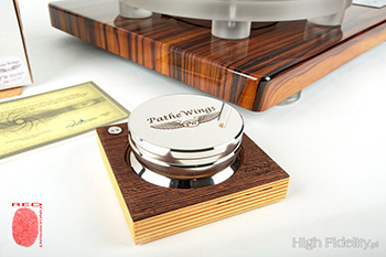 Dociski pana Bartosza stosuję standardowo przy testach gramofonów od ponad roku i jestem z nich bardzo zadowolony. Nowy, znacznie cięższy, jest też jeszcze lepiej wykonany. A może mi się tak zdaje? – W każdym razie jest perfekcyjny. Odsłuchałem go z kilkoma gramofonami, także z testowanym wyżej Pre-audio BT-1301 i za każdym razem powtarzało się kilka cech. Przede wszystkim cały dźwięk „siadał” niżej, pogłębiał się. Niby nie było mniej góry, jednak czerń tła, tj. to, co rozumiemy jako „ciszę” miedzy nutami była nieporównywalnie bardziej gładka i aksamitna. Dźwięk stawał się dzięki temu bardziej plastyczny i po prostu bardziej wyrafinowany. Nawet jeśli gramofon grał fajnie bez tego docisku, albo z innymi, firmowymi dociskami (jak Transrotory), to po wypróbowaniu PW-S1050 nie chciało się już słuchać inaczej niż z nim. A to, że to eksluzywny, drogi dodatek tylko podnosi jego wartość. Audio jest bowiem przestrzenią, w której muzyka ma swój kontekst, a są nim produkty służące do jej odtwarzania. Muszą być one nie tylko wierne duchowi muzyki, ale i nadawać jej właściwą oprawę. Produkty PatheWings są po prostu wybitne. Warto tylko dopasować wagę docisku do swojego gramofonu, ponieważ nie zawsze „cięższy” znaczy „lepszy”. Matom przyjrzę się kiedy indziej, ale skoro dociski są tak dobre, dlaczegóżby maty miały nie być?
