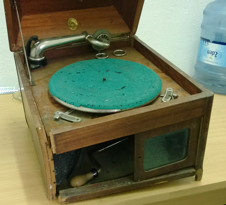 Gramofon produkowała Wytwórnia Fortepianów w Żninie. Pod tą nazwą występowały także płyty gramofonowe i igły do ich odtwarzania. THE KEMPISTY COMPANY Historia tego gramofonu z polskim wątkiem jest jeszcze ciekawsza. W dawnych czasach na placu Zbawiciela w Warszawie istniała firma naprawiająca maszyny do szycia. Po wejściu do środka klient był zaskakiwany i wpadał w podziw z powodu dużej liczby nagromadzonych tam maszyn. Firma istnieje do dziś i jest kontynuatorką zacnej firmy przedwojennej, która w pewnym momencie stanowiła lokalnie poważną konkurencję dla firmy Singer. Wszystko to i jeszcze więcej informacji można znaleźć TUTAJ. Można tam dowiedzieć się, że firma Kempisty produkowała także rowery. O tym, że produkowała gramofony informacji nie znaleziono, ale pokazywany egzemplarz jest żywym (no może ledwo żywym) dowodem, że istotnie tak było. O jego historii niewiele wiadomo, bowiem lata temu został po prostu znaleziony na śmietniku. O czym przekonamy się jeszcze nie raz głównym wrogiem gramofonów są wilgoć i MOLE.