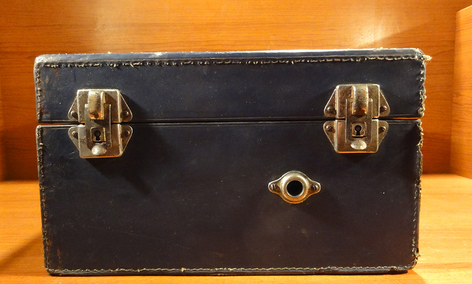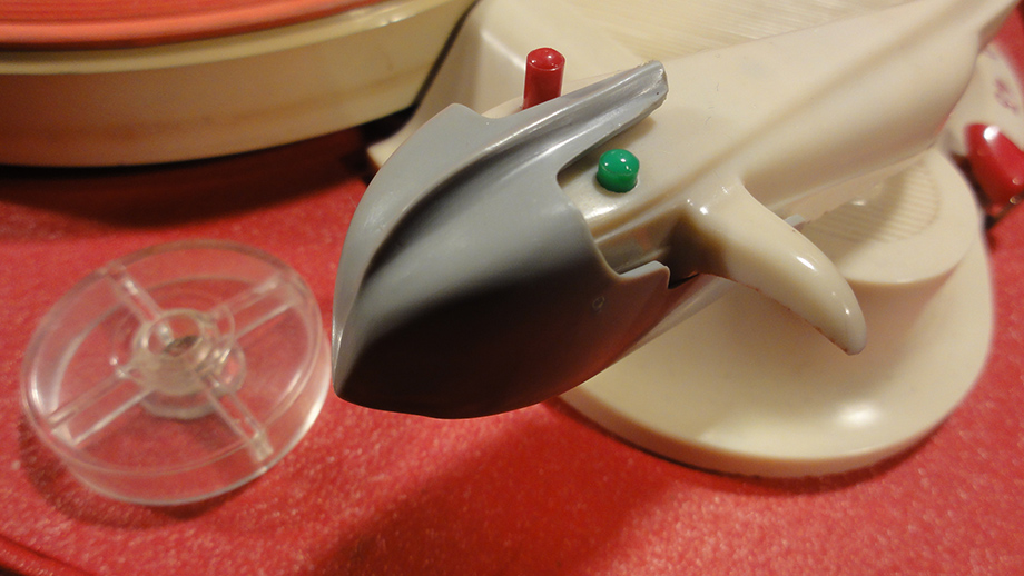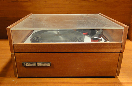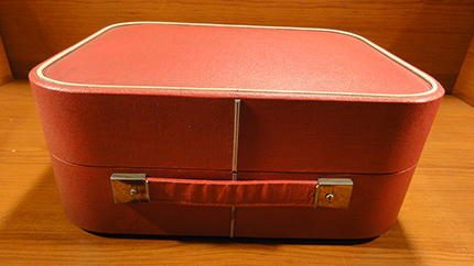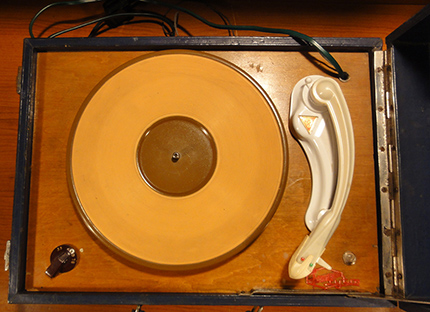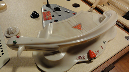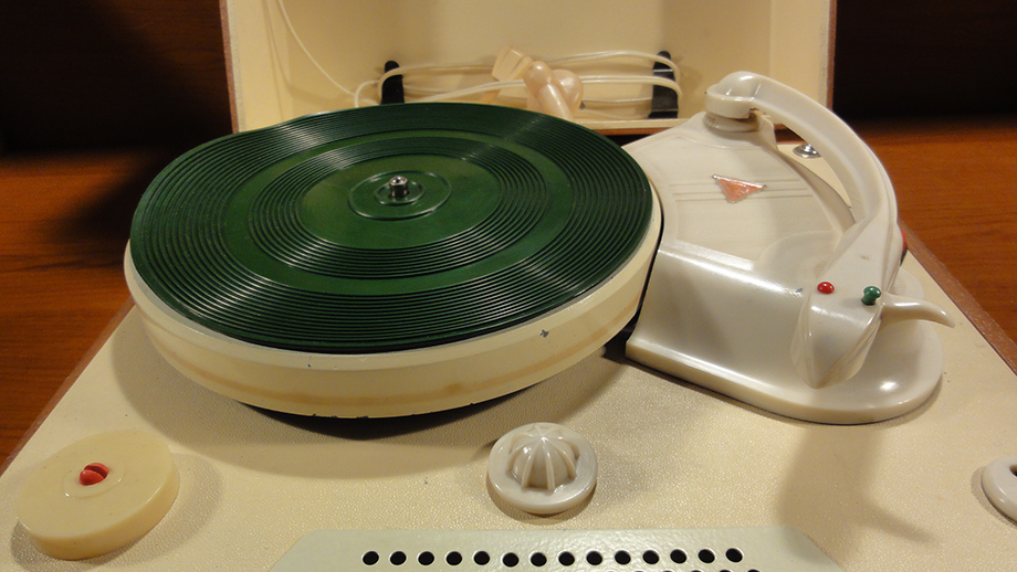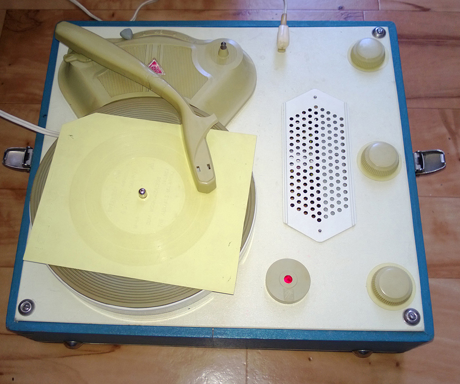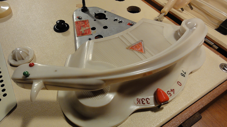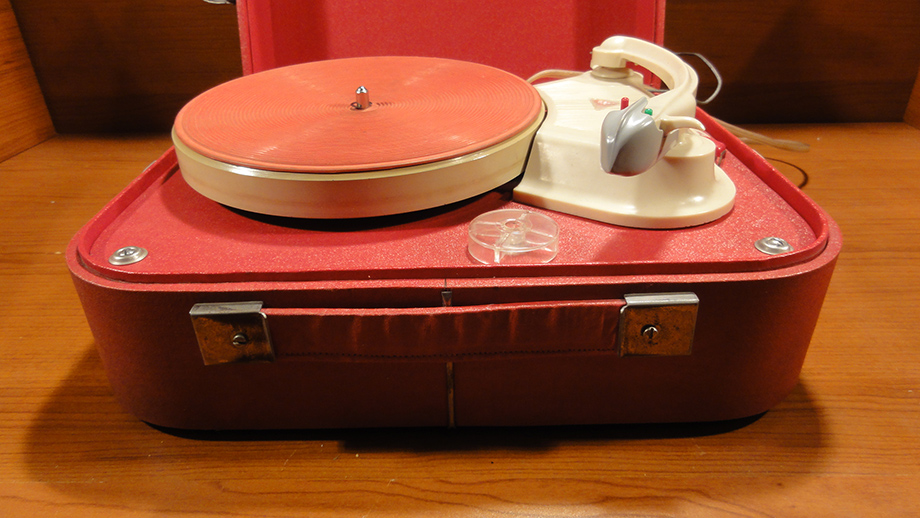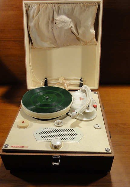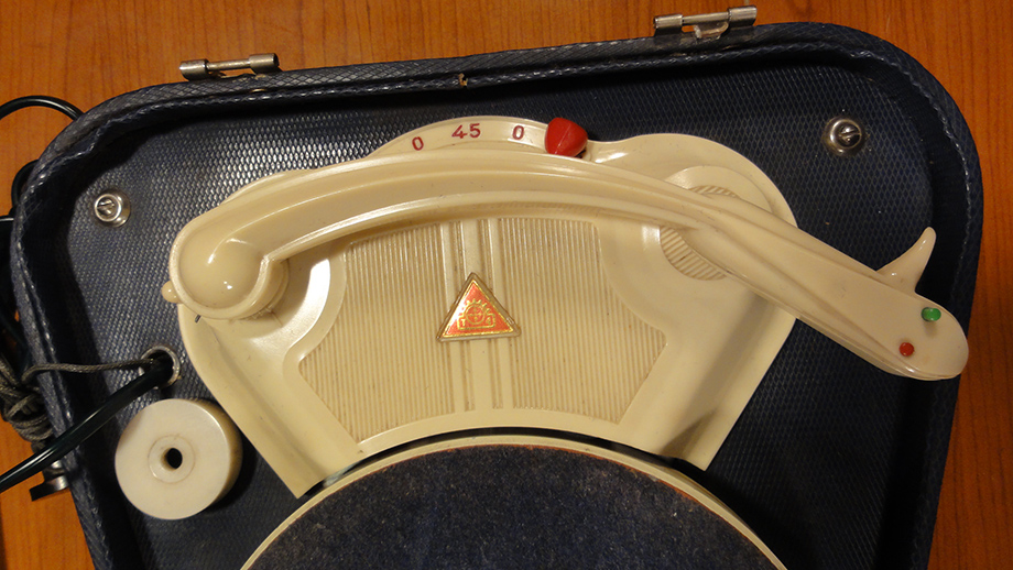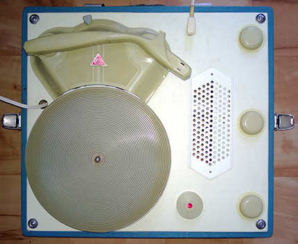 Walizkowy GE-56 z roku 1959 już z gumą na talerzu i z tradycyjnym kształtem obudowy:
