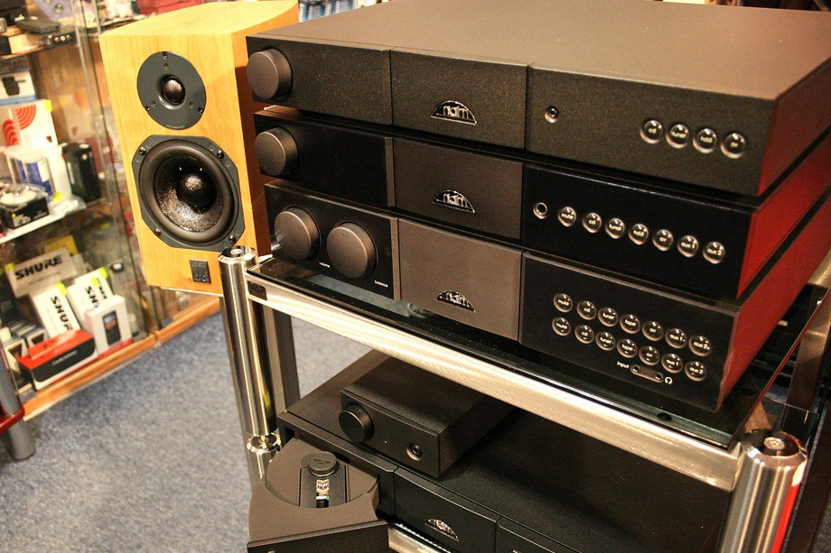 a odsłuch umówili się dwaj panowie. Jeden dostojny, w sile wieku, znajomy klient, który odwiedza nas z rzadka i robi zakupy oraz towarzyszący mu elegancki młodzieniec o przyjaznym usposobieniu i nie tylko konkretnych wymaganiach sprzętowych, ale i z żelazną konsekwencją, bezlitośnie i ze znawstwem eliminujący sprzęty, które nie spełniały jego jasno sprecyzowanych oczekiwań.