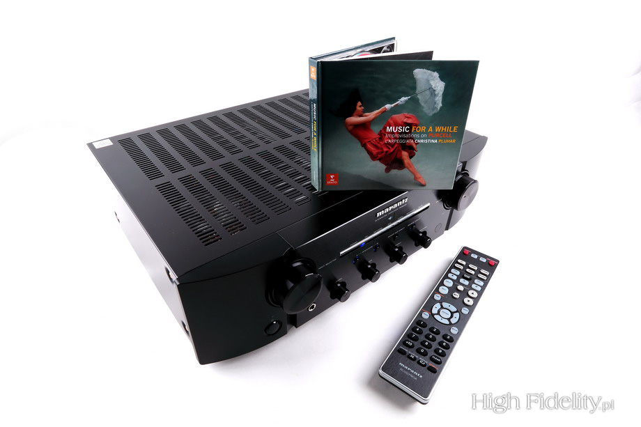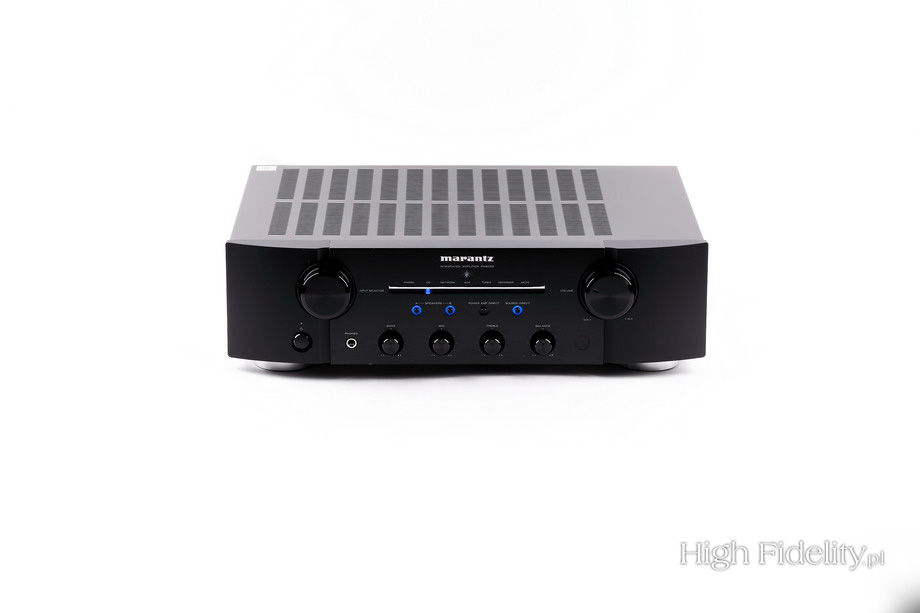 Barwa urządzenia jest gęsta i głęboka. Jak mówiłem, wzmacniacz nie konturuje dźwięku. A jednak jego brzmienie, przez otwartą średnicę, przez dynamiczny wyższy bas, jest wyraziste. Na szczęście w dążeniu do czystości i rozdzielczości nie przeholowano i można je wykorzystać do lepszego wglądu w nagranie. Każdy rodzaj muzyki, każda płyta pokaże charakterystyczne dla siebie brzmienie – tak było nawet z nagraniami Louisa Armstronga z lat 1925-1926. Urządzenia z podstawowego i średniego przedziału cenowego grają je albo w przytłumionej, albo agresywnej manierze. Te pierwsze brzmią ciepło, te drugie są otwarte. Marantzowi bliżej do tej drugiej grupy, a jednak wzmacniacz nie rozjaśnia dźwięku. Ten jest detaliczny i różnicuje detale, jednak bez wyostrzania ataku, bez podkreślania wysokiej średnicy. Podsumowanie Marantz może stanowić doskonałe centrum systemu stereofonicznego w domu dowolnego melomana. Nie ma przy tym znaczenia, jakiej muzyki ten słucha, bo w każdej przydadzą się zalety PM8005. A są to: czystość, otwarty dźwięk, znakomite różnicowanie nagrań i fantastyczna scena dźwiękowa. Ta ostatnia to nie tylko umiejętność konstruowania obrazu o dużym rozmachu, ale i czujność na akustykę konkretnego instrumentu i głosu. Tak duża rozdzielczość powoduje jednak, że trzeba się skupić na tym, aby nic w systemie nie podkreślało góry. Kable Supry, kolumny Castle’a – to kierunek, w którym warto się rozglądać. Nie jedyny, jako że eksperymenty są tu konieczne, ale niech będzie on punktem orientacyjnym. Wzmacniacz ma sporą moc i w normalnym pomieszczeniu nigdy nie powinno jej zabraknąć. Nie stara się ocieplić brzmienia, ukrywając wady danego nagrania, a raczej podpowiada jego zalety. Wyjście słuchawkowe traktowałbym jako pomocnicze – chyba że kupimy słuchawki o mocnym basie. To niezwykle solidne urządzenie od sprawdzonego producenta, dobrze wyposażone, grające dźwiękiem, z którego Marantz jest znany i którym się szczyci od lat. ![]() PM8005 należy do jednych z tańszych wzmacniaczy Marantza, w którym znajdziemy większość rozwiązań stosowanych także w najwyższych seriach. Można tu wymienić prądowe sprzężenie zwrotne, moduły HDAM SA3, tryb „Source Direct”, przedwzmacniacz gramofonowy, autorskie, bardzo solidne gniazda głośnikowe i od początku do końca dyskretny tor wzmocnienia, zmontowany wyłącznie przy wykorzystaniu tranzystorów. I sztywne chassis z potrójną ścianką dolną. Także jego projekt plastyczny jest zbliżony – to płaska część ścianki przedniej i dwa zaokrąglone boki. Te ostatnie są tutaj plastikowe, a środek – aluminiowy. Urządzenie jest bogato wyposażone. Dlatego poza dużymi gałkami siły głosu oraz selektora wejść mamy też gałeczki, którymi regulujemy barwę oraz balans między kanałami. Barwę zmienimy nie w dwóch – jak to jest w zwyczaju – a w trzech punktach: