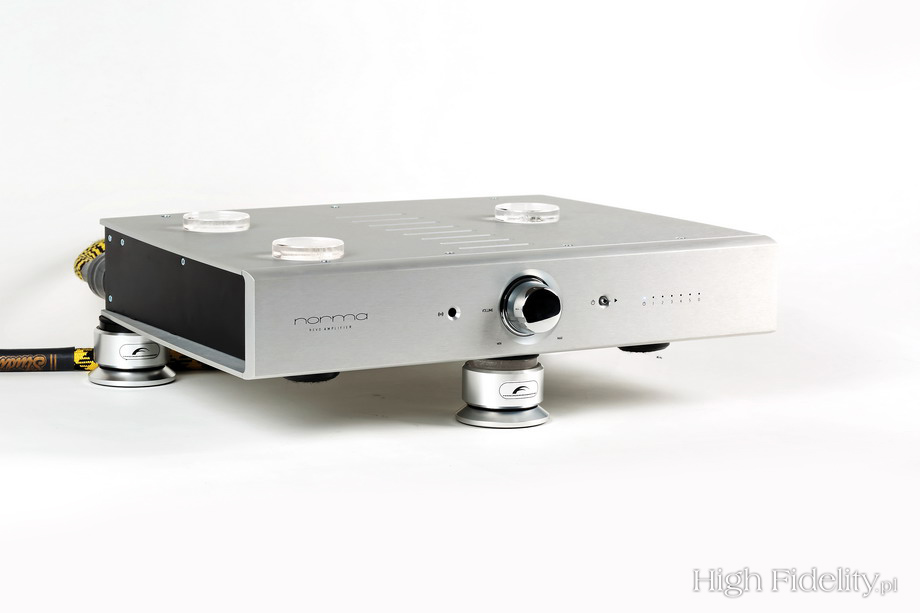 Wino we Włoszech smakuje jak nigdzie indziej. Kawa również. Na losowo wybranej stacji benzynowej jej smak i aromat są lepsze niż w wypasionej kawiarni w Krakowie. Takie życie. Wiele w tym mojego nastawienia, wpływu innego niż w moim ukochanym, zasmogowanym mieście klimatu. Podejrzewam jednak, że jest w tym coś więcej, jakaś łatwość mieszkańców Półwyspu Apenińskiego w smakowaniu życia, w braniu z niego to, co najlepsze. Włoskie urządzenie oferuje dźwięk zachęcający do relaksu i słuchania, słuchania i relaksu. Jego brzmienie można określić jako ciepłe, dalekie od prób wywarcia wrażenia szczegółowością i selektywnością. Podstawą tego przekazu są więc piękne barwy. Nieco ciepłe, ale nie zniekształcone ociepleniem. Charakter, o którym mowa, wynika nie z podkreślenia jakiejś części pasma, a z niskich zniekształceń i zaokrąglenia ataku, czoła dźwięku. Norma buduje prezentację na pozytywnym przekazie. To coś, co znam, podziwiam i staram się w „High Fidelity” naśladować, a co zaszczepili we mnie – za pośrednictwem fal radiowych (jakkolwiek dziwacznie to brzmi) – dziennikarze radiowej „Trójki”: Piotr Kaczkowski oraz Marek Niedźwiecki. Sytuacja odwrotna zdarza się często, nawet z top high-endowymi produktami, w których postawiono na czystą prawdę o wadach, nie zadbawszy o jej drugą stronę, czyli prawdę o zaletach. Ma to swoją logikę, jest częścią budowania bezkompromisowego przekazu, jednak mnie bliżej jest do tego, co proponują włoscy inżynierowie. Bo słuchanie muzyki ma być przyjemnością, dawać frajdę. Ma pobudzać do szukania nowych płyt pod kątem zawartości muzycznej, a nie sprawności realizatora i samoświadomości wydawcy. Nawet jeśli, jak w moim przypadku, urządzenia są jednocześnie narzędziem pracy. Jak mówiłem, to dźwięk mający ciepły charakter. Wysokie tony wydają się cofnięte i chyba tak w rzeczywistości jest. Są jednak dźwięczne, głębokie i pełne. Jeśli ktoś alergicznie nie lubi jasnego dźwięku, Norma będzie jego faworytem. Nadaje płytom coś w rodzaju szlachetnej patyny. Dzięki temu, że wolumen dźwięku jest duży, źródła pozorne mają pokaźne rozmiary, nie wsłuchujemy się, wyszukując detali, a odbieramy całość. Na koniec rzecz, która pozostaje w pamięci bardzo długo po tym, jak wzmacniacz wypniemy z naszego systemu. Norma gra właściwie jak niewielki wzmacniacz lampowy, na lampach KT88 lub EL34, pracujących w trybie triodowym. Znam to ze wzmacniaczy Unison Research, innego włoskiego producenta. To dlatego tak sprawnie, gładko łączy z sobą poszczególne elementy, budując zrozumiały, przyswajalny jak dobre piwo przekaz. Ale jest w tym coś więcej. Testowane urządzenie buduje duże obrazy pozorne i to ze swobodą, bez wysiłku. Niewielkie lampy robią wrażenie pełnią, skalą, kiedy jednak przychodzi do pokazania całego pasma, uderzenia prawdziwą masą, wtedy kapitulują i maskują to łagodnym wejściem w przesterowanie; po prostu w pewnym momencie się zatrzymują. Norma ma zapas mocy, który pozwala jej swobodnie rozwinąć każdą „myśl”, doprowadzić ją do końca. To jak połączenie małego wzmacniacza z „backupem”, wykorzystywanym w razie konieczności. Bardzo przypomina to granie cudownego, małego Clones Audio 25i. Z jeszcze głębszym brzmieniem i lepiej definiowanym basem.