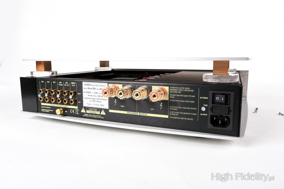 Czego wzmacniacz Revo IPA-70B nie robi równie dobrze? Nie jest jakoś wyjątkowo selektywny. Muzyki da się z nim słuchać bardzo głośno, bez cienia irytacji, gęste brzmienie aż zachęca do tego. Im głośniej, tym większy wolumen, tym większa scena i cieplejsze brzmienie. Kilka razy złapałem się jednak na tym, że pogłaśniam tylko po to, aby coś wyraźniej usłyszeć. A tak się nie dzieje. Urządzenie bardzo ładnie pokazuje barwę instrumentów operujących na dole pasma, różnicując je, nieźle ukazując zmiany rytmu, tempa. Nie spodziewałbym się jednak wyjątkowej dynamiki. Stopa perkusji uderza szybko i bez „smużenia”, ale też nie ma się poczucia uderzenia, suchego „trzasku”. I wreszcie sposób budowania sceny dźwiękowej: najważniejsze jest to, co przed nami. Scena jest szeroka i całkiem głęboka, ale uwagę skupiamy na pierwszym planie, to tutaj dzieje się najwięcej. Podsumowanie Norma należy do urządzeń, które z odpowiednio dobranymi kolumnami dają dźwięk „good enough”. Chodzi o to, że pomimo słabszych stron może być urządzeniem docelowym. Tak, naprawdę – posłuchajmy go z kolumnami Harbetha, Spendora lub Chario, a dostaniemy coś w rodzaju synergii, współdziałania. Choć charakter brzmienia kolumn wymienionych firm jest zbliżony do charakteru Normy, to mamy do czynienia ze wzmacnianiem ich zalet, a nie maskowaniem wad, ani tym bardziej ich podkreślaniem. Dodajmy kable Acoustic Revive lub Harmonix i pozostanie jedynie dobór źródła. Naturalnym dopełnieniem takiego smakowitego systemu byłby gramofon, do czego gorąco zachęcam. Ale i sensowny streamer zda egzamin. PORADA Myślę, że przyda się kilka prostych porad dotyczących tego, jak najpełniej wykorzystać zalety tego wzmacniacza. Przede wszystkim wymaga on długiego okresu wygrzewania przed graniem. Najwyraźniej elementy elektroniczne w układzie, który nam zaproponowano, potrzebują optymalnej temperatury do osiągnięcia parametrów, o które chodziło projektantom. Najlepiej w ogóle wzmacniacza nie wyłączać. Nie grzeje się zbytnio, nie powinno to być więc problemem.