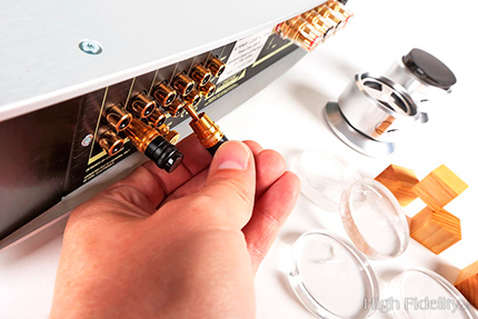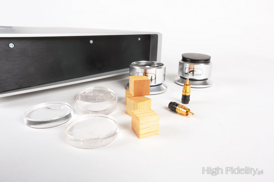 Koniecznie trzeba też pomyśleć o elementach antywibracyjnych. W teście wzmacniacz stał na stopach Franz Audio Accessories Ceramic Disc Original, z krążkami RIQ-5010. Takie same krążki, ale w wersji przezroczystej, postawiłem na wzmacniaczu. Platformy Pro Audio Bono lub Franz Audio Accessories też nie zaszkodzą. |