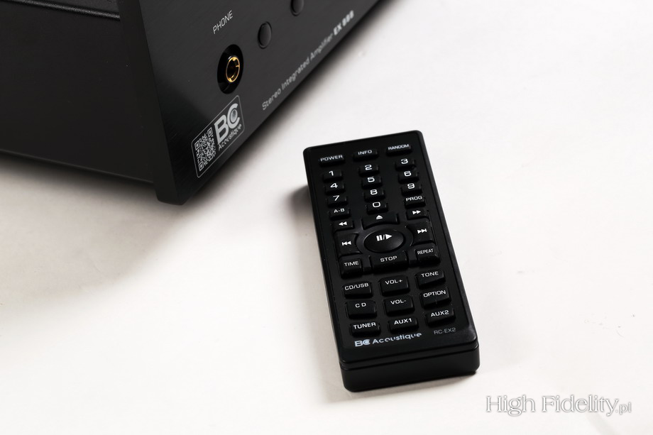 Wyjście słuchawkowe we wzmacniaczu lampowym to dobry znak. Sporo z nich na tyle dobrze spisuje się w roli wzmacniacza słuchawkowego, że nie trzeba kupować zewnętrznego urządzenia. EX-888 gra w tym trybie bardzo przyjemne. Z łatwością wysterowuje dowolne słuchawki, nawet HE-6 HiFiMANa. Lepiej jednak brzmią z nim słuchawki o wyższej skuteczności, jak Sennheisery HD-800 i HE-560 HiFiMANa, jak również LCD-3 Audeze. Dostajemy wówczas niski, mięsisty bas, dobry rytm i czystą górę. Inaczej niż w połączeniu z kolumnami nie ma żadnych problemów z definicją niskich zakresów. Uwagę należy zwrócić na podkreśloną wyższą średnicę. Dźwięk nie jest ostry, ale głosy mają mocniejszy wyższy zakres. Jak by nie było, najważniejszym celem BC Acoustique pozostaje jednak współpraca z kolumnami. Okazjonalne odsłuchy przez słuchawki są jednak jak najbardziej uprawomocnione.