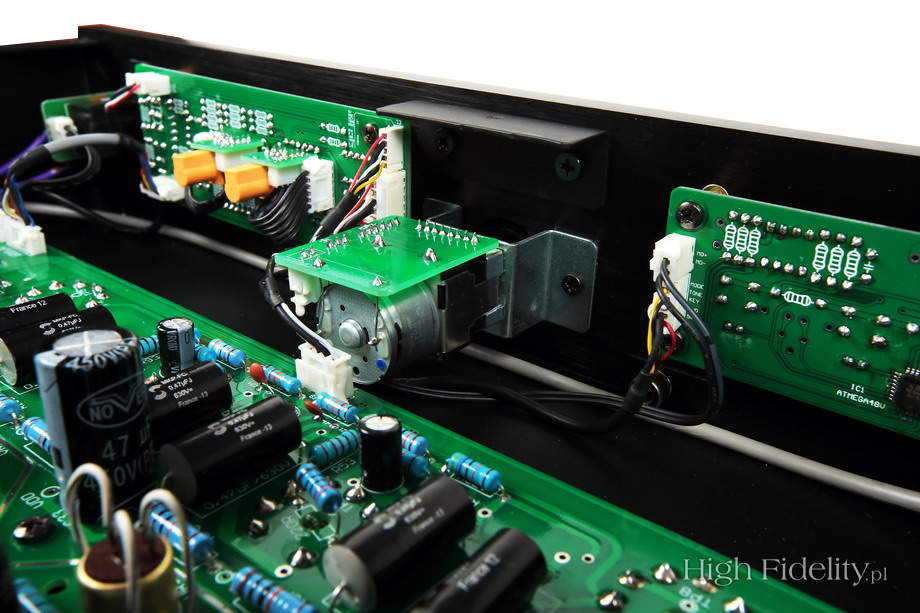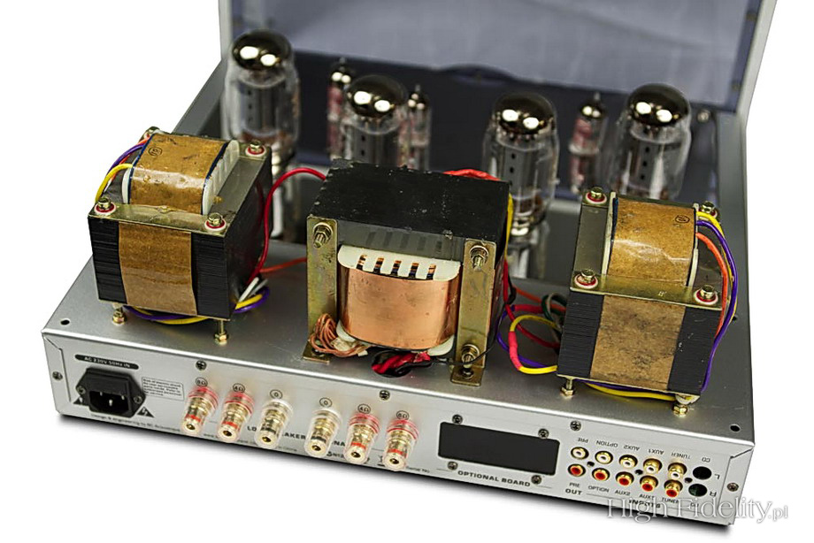 W zasilaczu zastosowano transformator typu EI, o mocy 550 W, starannie zaimpregnowany, z osobnymi odczepami dla lewego i prawego kanału. W prostowniku użyto diod o bardzo szerokim paśmie pracy. Napięcie filtrowane jest w filtrach CLC, tj. z dławikiem pomiędzy dwoma bankami kondensatorów. Osobno prostowane i filtrowane jest napięcie żarzenia. Wejścia przełączane są przekaźnikami. Sygnał dla wyjścia słuchawkowego pobierany jest z wyjść głośnikowych. Pilot zdalnego sterowania, to jedyny słaby punkt w stylistyce tego wzmacniacza. Jest plastikowy, brzydki i nieergonomiczny. Jego jedynym plusem jest to, że obsłużymy nim również odtwarzacz CD tej firmy. ![]() Dane techniczne (wg producenta) Moc wyjściowa (ciągła): ![]() Dystrybucja w Polsce: |