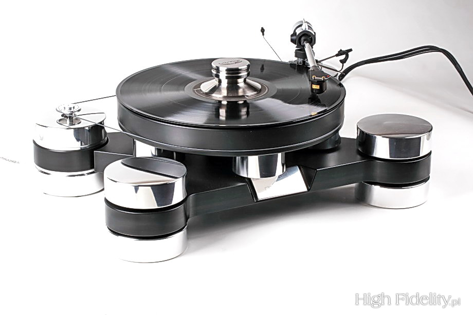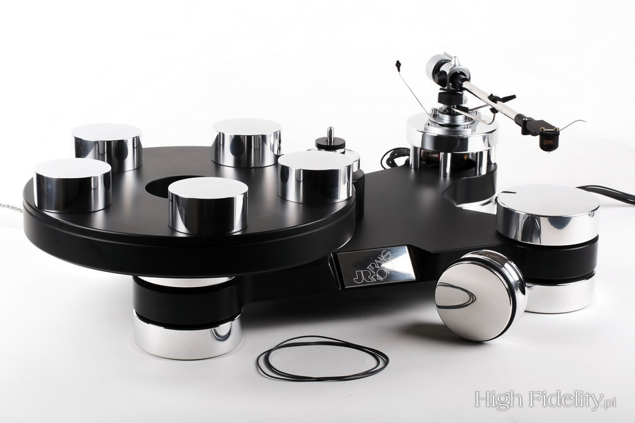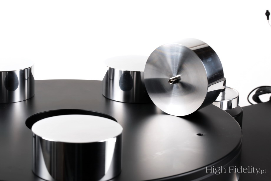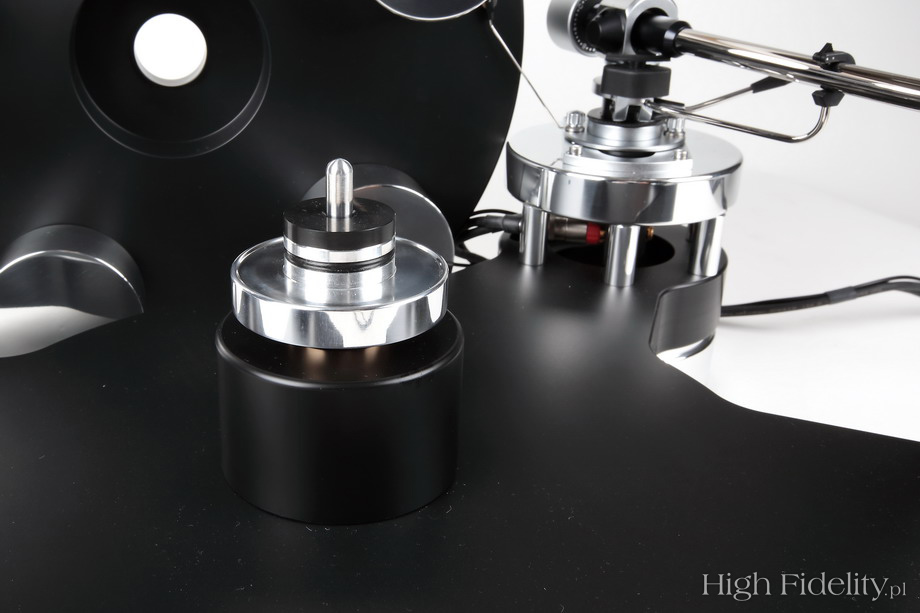 Zacząłem od wskazania mocnej niskiej średnicy. To jasne od pierwszego odsłuchu, szczególnie z mającą podobną charakterystykę brzmienia wkładką Kansui firmy Miyajima-Lab. Ale i z Merlo Reference, z którą gramofon do nas przychodzi, i z wkładkami ZYX był to „numer jeden” na liście postrzeganych cech. Gęstość środka pasma najbardziej widoczna jest na płytach, w których nam do tej pory go brakowało, albo takich, które zakwalifikowaliśmy w głowie jako „średnie”. Teraz możemy je odkwalifikować, bo brzmią inaczej. Przesłuchałem sporo polskich płyty wytłoczonych w latach 80., a więc w czasie dla LP najgorszym. Ich problemy były dla mnie jasne. Ale też niespecjalnie odciągały one od samej muzyki. A w niektórych przypadkach, jak z płytą Anatomia polskiej grupy rockowej Lombard (1985), czy z Sadhaną polskiego pianisty Sławomira Kulpowicza (1989) usłyszałem dźwięk tak rasowy, tak zaskakujący w swojej różnorodności, w różnicowaniu, w produkcji, że musiałem odzipować teczkę w głowie, w której gramofon z Niemiec wrzuciłem do grupy produktów nieróżnicujących. Tak, drodzy państwo, nie jest. Słuchając nagrań, w których różnicowanie instrumentów jest kluczowe, bo to ono buduje tożsamość nagrania, można dojść do wniosku, że pierwsze wrażenie było mylne. Tak, homogenizacja dźwięku jest w przypadku testowanej konstrukcji jednoznaczna. Nie jest to jednak homogenizacja liniowa, działająca na cały dźwięk jednakowo we wszystkich aspektach. Jak się wydaje, zaokrąglane są w tym przekazie krawędzie odpowiedzialne za atak. Selektywność nie wydaje się więc zbyt wysoka. Już jednak to, co przychodzi po ataku, wypełnienie, ma bogate różnicowanie, gęstość i głębokość. I znowu – wybrzmienia są lekko skracane i wygaszane szybciej niż w innych gramofonach tego producenta. Dodajmy do tego dużą energię basu i góry i gęsty środek, a otrzymamy całkiem sensowny, krótki opis trzeciego w rodzinie Dark Star modelu. Dla mnie taki zestaw cech jest idealny. To dlatego tak niesamowicie zadziałał na mnie TechDAS Air Force One. To kompletnie inny poziom jakościowy, ale ta sama rodzina brzmień. Japoński cesarz wśród gramofonów (jestem jego poddanym) jest bardziej dynamiczny od Dark Stara. Dynamika nie jest czymś, co byłoby w przypadku niemieckiej konstrukcji w centrum uwagi. Thales TTT-Compact z ramieniem Thales Simplicity Mk2 i podstawą Thales Levibase (czytaj TUTAJ) był bez porównania bardziej dynamiczny i motoryczny. Podsumowanie Nowy gramofon Transrotora wykorzystuje wszystkie patenty tego producenta, które już zostały wykorzystane w innych jego modelach. Ich połączenie, unikatowe dla tego konkretnego modelu, daje jednak dźwięk o inaczej rozłożonych akcentach, charakteryzujący się innym zestawem dominujących cech. Z jednej strony nie będzie to coś w rodzaju „narzędzia”, studyjnego gramofonu, np. masteringowego, który momentalnie pokaże różnice w materiale. Jego selektywność nie jest specjalnie duża, a atak jest uspokojony. Scena dźwiękowa skupia się w obrębie pierwszych planów. Gramofon bardzo ładnie, ale jednak bez specjalnego różnicowania odtwarza stare nagrania, jak pochodzące z lat 1935-1937 utwory na wydanej przez Pure Pleasure płycie Bilie Holliday Lady Day, czy na przepięknym remasterze Chet Baker Quartet z francuskiej wytwórni Barclay Disques, przywrócone do życia przez Sam Records. Brzmi to niesamowicie przyjemnie, ale dość podobnie. Jeśli poświęcimy na słuchanie trochę więcej czasu, nigdzie się nam nie spieszy, to wszystkie detale, których brakuje w pierwszej chwili się pokażą. Jak piękne blachy na płycie z koncertu Billa Evansa z klubu Top of The Gate, czy fortepian Oscara Petersona, z właśnie przygotowanego przez mojego przyjaciela, Dirka Sommera (Sommelier Du Son, hifistatemen.net) boxu z jego nagraniami z cyklu For Friends. Wystarczy, że trochę odpuścimy i podejdziemy do aktu słuchania bez oczekiwań, w tym sensie, że nie jak audiofile. Tak, jakbyśmy chcieli słuchać, a nie odsłuchiwać. Wtedy ten dźwięk ma szansę nas zauroczyć. Jest w nim wszystko, czego po analogu oczekujemy, bez większości wad takiego stereotypowego podejścia. Nieduży, łatwy w ustawieniu, zgrabny i ładny gramofon od jednego z najbardziej cenionych producentów gramofonów na świecie, od pana Johena Räke jest w tym, co robi doskonały. ![]() Model Silver Shadow jest rozwinięciem podstawowego, pierwszego modelu z serii Dark Star. Choć w ofercie jest jeszcze Dark Star Reference, to ma on na tyle odmienną konstrukcję (podwójną podstawę), że jest raczej krokiem w bok niż do przodu. Z POM-u wykonana jest nie tylko podstawa, ale i talerz. Ma grubość 30 mm, jednak pod spodem widać coś, do czego biło niegdyś wiele serc: 30-mm walce z chromowanego mosiądzu, obniżające punkt ciężkości talerza i nadając mu większą masę, koncentrując ją na jego obrzeżu.