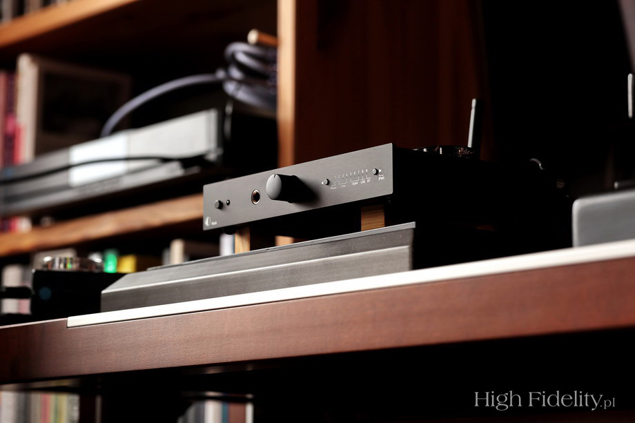 Regulacją siły głosu zajmuje się pełnowymiarowy, ładny potencjometr, który wygląda, jak czarny Alps. Przy wejściu gramofonowym jest przeznaczona dla tego przedwzmacniacza płytka, z czterema układami scalonymi: JRC2067 oraz TL071 Texas Instruments. Elementy montowane są powierzchniowo, oprócz dwóch kondensatorów polipropylenowych w pętli korekcyjnej RIAA. Wejście USB obsługiwane jest przez układ XMOS GT1325L, a DAC to kość Cirrus Logic CS4344. Obok niego widać bardzo dobry zegar taktujący. Wejścia przełączane są w przekaźnikach. Gniazdo słuchawkowe ma własny wzmacniacz, z układem scalonym i dwoma kondensatorami polipropylenowymi Wima. To bardzo zaawansowany technologicznie, skomplikowany system. Każdy z układów osobno nie jest może wymyślny, ale razem tworzą niezwykły system. Który w dodatku naprawdę fajnie gra! ![]() Dane techniczne (wg producenta) Wejścia liniowe: 2 x RCA + mini-jack 3,5 mm ![]() Dystrybucja w Polsce: |