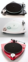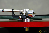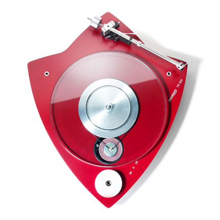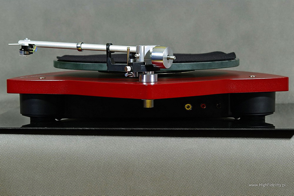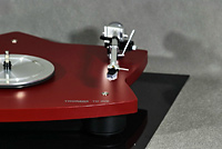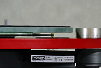 TD 309 is one of the special additions to the present Thorens offer as it is a completely new design and not just a version of some older one. Not that I see anything wrong with continuing the good company tradition, but to find out how good the present Thorens designers are one should listen to something they really created. There is one thing everybody has to notice right away and that makes TD309 different from any other model this company ever made – its shape. There is no classic, rectangular sub-chassis. Instead, there is a mdf board (in this case painted in a very attractive red color) in the shape of… an arrow, I would say. Does this arrow point Thorens in the new direction? Hard to say but it surely looks damn good. From what I heard from the distributor this model already made some others obsolete, so maybe it really determines a new direction for the future of this manufacturer. The arm is mounted in one end of the “arrow” and in the other there is a weight that needs to be placed to balance the arm’s weight and to level the whole design. It is quite difficult to classify this design – in most places I checked they called it a suspended one and there is in fact a 3-point suspension – in each of the three “legs” there is an adjustable spring. According to the maker, these footers and the triangular synthetic brace connecting them create the decoupling base to support the top deck to which the platter, motor, and arm are mounted. This triangular brace holds the RCA posts, grounding post, and on the other side also the power inlet. The turntable sports a low noise, low voltage electronically speed controlled DC Motor. The torque is passed from the motor to the aluminum sub-platter with a rubber belt. The platter is made of some kind of quartz glass and you get a felt matte to put it on. The arm was specifically designed for this turntable. TP92 is a cardan-suspended 9-incher which affords trim of overhang, azimuth, VTA and anti-skating. Thorens dubs their resonance suppression efforts for the straight aluminum wand - the first is a ring which Thorens claims has exactly the right mass and sits exactly in the right spot – so users should not move it under any circumstances. Secondly, inside the wand there is this synthetic tube which deliberately doesn’t line the aluminum shaft to instead damp its surface. The counterweight sits low to align with the pickup’s center of gravity and bearing. The removable head shell has a lateral hole in it to fix the cartridge to it and to allow for the overhang adjustment by moving the pickup along the hole.   Setting this turntable up is as simple as it gets so it doesn’t take long. After that all that is left to do is… listening to the music. Yes, that’s right – enjoying music, and not analyzing the sound. I’m pretty confident that 99% of the people who buy TD309 as their first-ever turntable become vinyl aficionados for life. The sound is coherent, smooth and „soft” in this special, analogue way, so one won’t find any sign of digital roughness here. The AT MM cartridge is capable of delivering quite well extended and powerful bass – the AC/DC concert was dynamic, powerful, with nice, fast, and hard guitar riffs. Also when playing classical repertoire, the Thorens did quite well handling the enormous dynamics and energy of symphonic orchestra. More resolution would be appreciated to reproduce all the details and nuances, and to precisely show the whole depth of the soundstage. But in general my impression was very good, because even though the orchestra was missing some depth, yet the coherence of the presentation, its dynamics and quite impressive emotional load allowed me the forget about weaknesses and simply enjoy Mozart, Tchaikovsky or Bizet. Also beautiful female vocal recordings sounded pretty good on the Swiss/German deck. Surely one could point out elements that might be improved but there was nothing that would clearly spoil the presentation. There was lots of information in the sound about voice texture, singing techniques, some tiny nuances. Soundstage was also quite big and presented in an orderly way with the vocalist in front, the band at least a step back, although I must say I would appreciate a bit more depth. As long as I was listening to some small band everything was fine – the presentation was 3D enough. Still in general Thorens shows one big, coherent picture rather than precisely placed phantom images. Having said that let me add that, firstly, it clearly didn't disturb me enjoying the presentation. Secondly, I was pretty sure that it was the inexpensive cartridge responsible for that. | To confirm all that and to better judge what this deck is capable of I decided to mount my own Audio-Technica AT33PTG. It's a MC cartridge that costs (in retail prices) around 4 times more than the AT-92.   And then there is the soundstage – I listened to the Thorens also with the (already reviewed) Genesis 7.1f loudspeakers that thanks to their dipole tweeter system delivered fantastic depth. The AT-92 obviously significantly limited this soundstage depth, but with the AT33PTG all limitation in this area was gone – the depth was really great, distances between instrument almost „palpable”, the instruments themselves well defined in the 3D space, with lots and lots of air around them. Long story short – the change of cartridge effected in really significant improvement of the sound of the whole rig – the change was comparable to watching the same movie in 3D. Finally, I added the final upgrade - Teddy Pardo power supply which was in fact the final touch. It was easier to hear that when I removed it from system than when I first plugged it in, but it didn't change the fact that it really was an upgrade. What were the improvements? Well, the sound became more relaxed and better saturated – it might suggest that there was something wrong with the sound without Pardo, but that wasn't tr