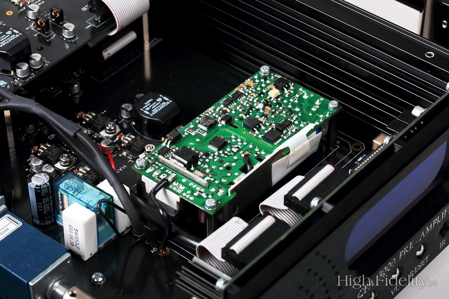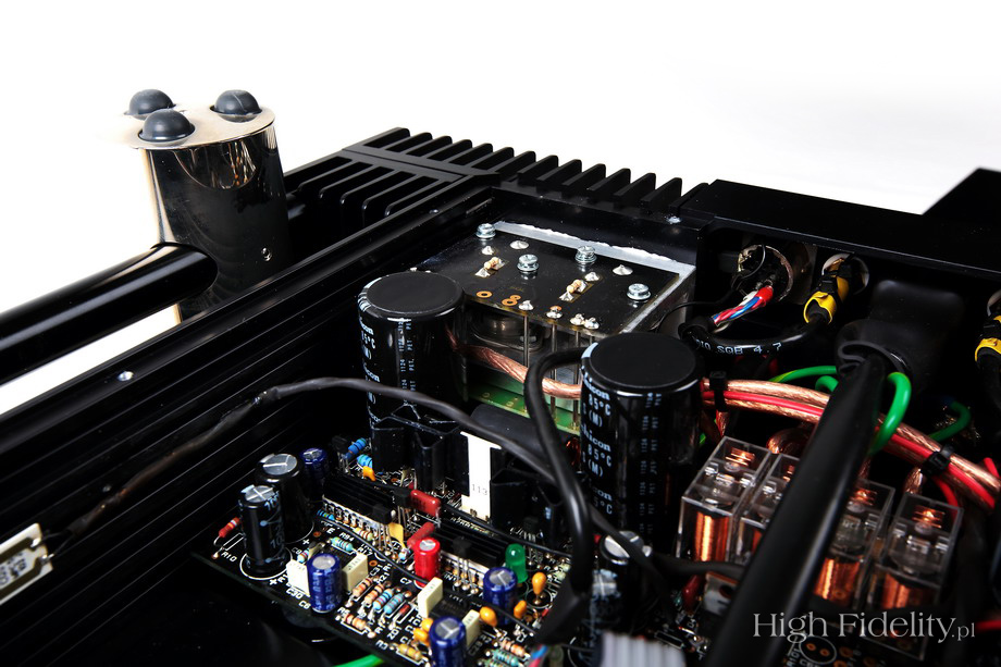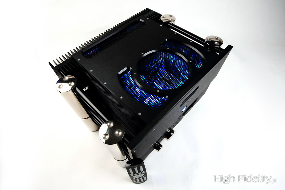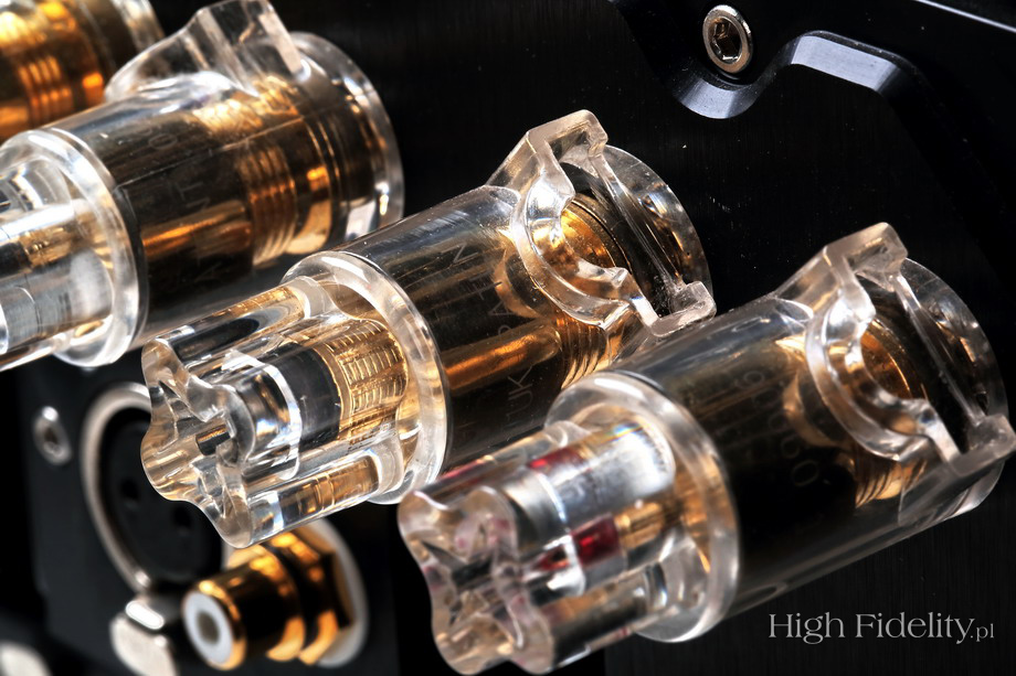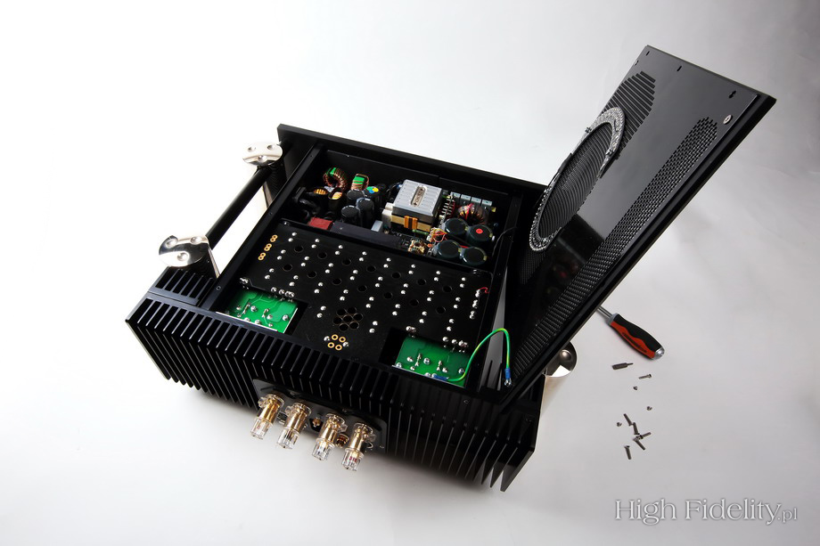 Środek został podzielony podobnie, jak to kiedyś widziałem we wzmacniaczu T+A PA3000HV. Układy elektroniczne zamontowane są po dwóch stronach, dzielącego wnętrze na dwie części, ekranu. Patrząc od góry widać zasilacz. To zasilacz impulsowy, ale rozbudowany jest bardziej niż duża część zasilaczy liniowych. Jego podstawą jest naprawdę spory transformator zamieniający napięcie 230 V na wysokie napięcie o bardzo wysokiej częstotliwości próbkowania. Aby nie drgał zamknięto go w aluminiowym odlewie. Obok widać wiele układów stabilizujących i filtrujących napięcie. Na płytce pod spodem, z układem wzmocnienia, są dodatkowe, duże kondensatory, zapewniające zapas mocy potrzebny przy nagłych skokach sygnału. Układ wzmacniający na wejściu ma układy scalone z małymi radiatorkami – to odbiorniki pozwalające na stosowanie długich kabli połączeniowych. Sekcja tranzystorów końcowych i sterująca są tranzystorowe. Niezwykła jest ta pierwsza. Użyto w niej tranzystorów typu MOSFET o wysokim napięciu zasilającym (+/- 90 V), co znowu przywołuje na myśl konstrukcję T+A. Użyto tu po osiem, pracujących w push-pullu tranzystorów w rzadko spotykanych obudowach typu TO-3. Tranzystory pracują w klasie AB z „pływającym biasem”, co pozwala na oddanie dużej części mocy w klasie A bez nagrzewania radiatorów. Znakomita konstrukcja. ![]() Dane techniczne (wg producenta) Przedwzmacniacz CPA 300 Wejścia: Wymiary (mm): 420 (w) x 140 (h) x 355 (d) Waga: 18 kg ![]() Dystrybucja w Polsce: ![]() DOŁĄCZ DO NAS NA TWITTERZE: UNIKATOWE ZDJĘCIA, SZYBKIE INFORMACJE, POWIADOMIENIA O NOWOŚCIACH!!! ![]() ![]() |