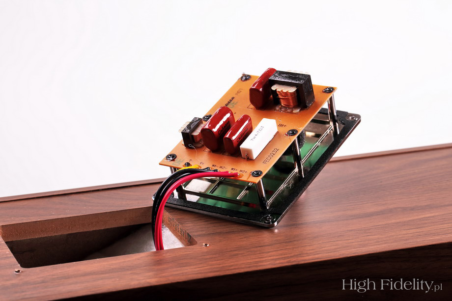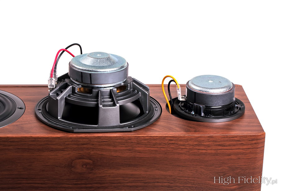 Jeśli posłuchamy ich z czymś fajnym, zagrają pełnym, gęstym dźwiękiem. To kolumny, które nie służą do analizy, a do syntezy. Spodobają się szerokiemu gronu słuchaczy, także tych, którzy nie są audiofilami, a po prostu chcą w dobrych warunkach posłuchać muzyki. To wyjątkowa okazja, aby zarazić dobrym dźwiękiem ludzi na co dzień stroniących od audiofilizmu, jak od zakaźnej choroby – zarówno wygląd, jak i dźwięk kolumn Jersey spodoba się szerokiemu gronu melomanów, fanów i muzycznych freaków. To rzecz, której nie kupimy za żadne pieniądze, a tutaj dostajemy za sensowne pieniądze. ![]() Jersey MT32 to kolumny wolnostojące, dwuipółdrożne, trzygłośnikowe. Górę pasma obsługuje kopułka wysokotonowa DOM 37 z niewielką tubką. Membrana została wykonana z termoplastycznego, bardzo cienkiego materiału o nazwie PEEK. Poniżej mamy dwa, pracując wspólnie głośniki nisko-średniotonowe 17TN15 z polipropylenowymi membranami o średnicy 170 mm. Ich kosze wykonano z wtłaczanego, sztywnego plastiku. Wszystkie głośniki produkowane są przez Cabasse samodzielnie. Warto zwrócić uwagę na szczegół, ale istotny, bo pokazujący dbałość o szczegóły – przetworniki przykręcone są do obudowy nie wkrętami do drewna (na tym poziomie cenowym to klasyka), a śrubami. Daje to lepsze połączenie, znacznie trwalsze w czasie. Podział między głośnikami ustalono na 2640 Hz. Zwrotnicę zmontowano na płytce drukowanej, przykręconej do płytki z zaciskami. W zwrotnicy zastosowano bardzo ładne elementy bierne – kondensatory polipropylenowe i cewki rdzeniowe na rdzeniach transformatorowych. Wnętrze obudowy wytłumiono płatami sztucznej wełny. Obudowa wykonana jest z płyt MDF i ma lekko zaokrąglone górne krawędzie – inaczej niż zwykle. Oklejono ją winylową okleiną, która bardzo ładnie wygląda. Od spodu dokręcony jest na stałe cokół, ustalający prześwit między nim i dolną ścianką kolumny, na której umieszczono wylot bas-refleksu. Do cokołu wkręca się kolce. Warto zwrócić uwagę na tabliczkę z gniazdami głośnikowymi – jest bardzo sztywna i ładna. Najczęściej jest to plastikowa, brzydka wytłoczka. Zaciski są pojedyncze, złocone.