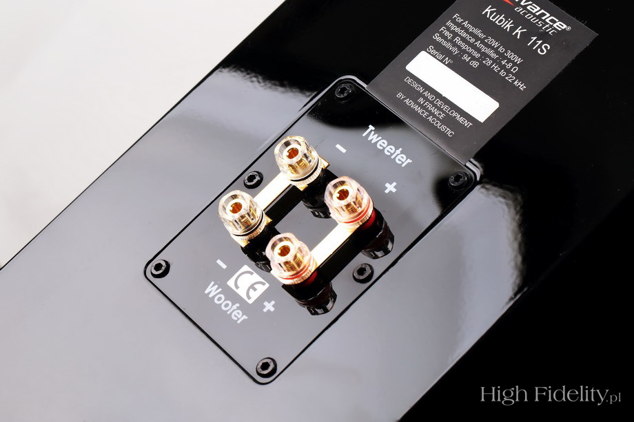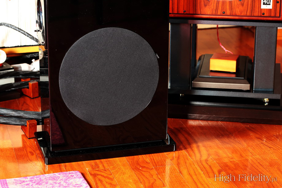 A jednak słuchamy z przyjemnością, bez potrzeby głośnego grania – nawet z niskim poziomem dźwięku Kubiki prezentują pełny dźwięk. Wpasowują się w pomieszczenie bez problemów i mogą stać blisko siebie, ale też bardzo daleko. Pamiętajmy tylko o mocnym wzmacniaczu – kolumny lubią mieć za sobą solidne oparcie. RED Fingerprint – i niech dzieje się muzyka! ![]() Kubik K11S to kolumny trójdrożne, sześciogłośnikowe. Na przedniej, wąskiej ściance umieszczono pięć z nich – cztery średniotonowe, o średnicy fi 130 mm każdy, rozmieszczone symetrycznie po obydwu stronach jedwabnej kopułki wysokotonowej o średnicy fi 25 mm z neodymowym magnesem. Taki układ nazywany jest najczęściej d’Appolito, ale nie zawsze ma związek z tym „patentem”. Do jego pełnej realizacji potrzebne są bowiem również odpowiednie filtry zwrotnicy – razem z fizycznym rozmieszczeniem głośników dają kontrolowaną w pionie dyspersję, dającą wrażenie punktowego źródła dźwięku. Zakładam jednak, że właśnie z tym rozwiązaniem mamy do czynienia – firma mówi o tym na swojej stronie www. Nie wiem, jakie filtry użyto w K11S, wiadomo tylko, że pasmo dzielone jest przy 2900 Hz, a więc dość wysoko. O dołu z kolei głośniki średniotonowe obcięte są dopiero przy 100 Hz, gdzie zaczyna przenosić potężny, 310 mm głośnik niskotonowy. Przetworniki średniotonowe i niskotonowy mają membrany z powlekanego papieru. Głośnik basowy przykręcono na bocznej ściance. Można więc kolumny ustawić z niskotonowcami do środka lub na zewnątrz. U mnie lepiej zagrały, kiedy woofery skierowane były na zewnątrz. Warto jednak zaznaczyć, że to nie jest reguła – Amphiony Krypton3, o bardzo zbliżonej konstrukcji, lepiej grały z głośnikami do środka (czytaj TUTAJ). Obudowa ze wzmacnianych wieńcami płyt MDF, pokrytych lakierem fortepianowym, wentylowana jest bas-refleksem, z wylotem na przedniej ściance. Dodajmy, że obudowy usztywniane są również panelami z litego drewna. Od spodu wkręcamy cokół, który pozwala uzyskać lepszą stabilność. Od spodu wkręcamy cztery kolce. Proponowałbym jednak, żeby od razu kupić do nich stopy antywibracyjne Franc Audio Accessories - firma ma takie, z odpowiednią śrubą do ich wkręcenia. To naprawdę pomoże!