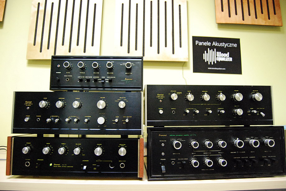 SANSUI AU-222, AU-555A, AU-101, AU-777A, AU-666 Warto również zwrócić uwagę na design tej marki, ponieważ nie jest on przypadkowy. „Sansui” w starożytnych Chinach był to rysunek czarnym tuszem przedstawiający naturę – drzewa, skały, strumienie. W Japonii rozpowszechnił go mnich Sesshu, który próbował połączyć rysunek wraz z filozofią Zen. Pozostało po nim wiele prac, które go rozsławiły, co nie pozostało bez znaczenia, jeśli chodzi o wpływ na kulturę Japonii. Sama nazwa Sansui oznacza „góry i wodę”. I tak oto wyłania nam się obraz firmy Sansui – prosty i charakterystyczny design – głównie połączenie czarnego panela z białymi napisami - czyli bezpośrednie nawiązanie do rysunku. Tę filozofię obrazują wzmacniacze: AU-555, AU-666, AU-777, AU-888, AU-999, AU-7500, AU-8500, AU-9500, AU-9900, a nawet amplituner 9090DB, który w wersji czarnej występuje jako model 990DB. To, co wyróżnia markę, to zastosowanie ponadczasowych rozwiązań technologicznych. Wiele nowatorskich pomysłów Sansui było inspiracją dla innych producentów. Widoczna jest wielokierunkowość prowadzonych badań, które owocowały później bardzo dużą ilością zastosowanych możliwości regulacyjnych. Rozwiązania te pozwalały przyszłym użytkownikom dostosowywać wybrane zestawy do indywidualnych wymagań. Mówimy tu oczywiście o modelach, które dzisiaj uznawane są za high-end. Zastosowania te również znalazły miejsce w modelach niższych, ponieważ firmie Sansui zależało na dotarciu do jak największej rzeszy klientów.