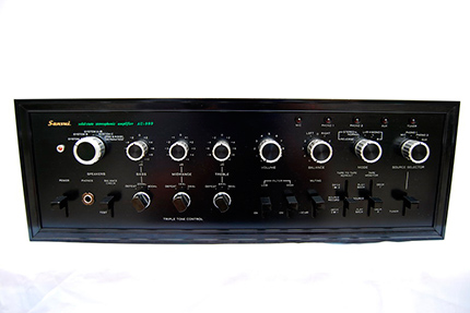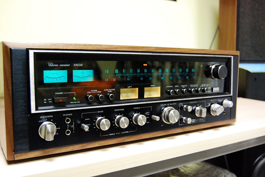 Amplituner SANSUI 990DB W amplitunerze Sansui 990DB zastosowana została sekcja wzmacniacza o mocy 125 W na kanał przy impedancji 8 Ω. Analogowy tuner AM/ FM. Trzystopniowa regulacja barwy tonu: bass, midrange, treble oraz loudness. Możliwość podłączenia trzech par kolumn, dwóch gramofonów oraz dwóch magnetofonów jednocześnie. Amplituner ma wskaźniki wysterowania kanałów z możliwością ich przełączenia do ustawienia poziomu zapisu na magnetofonie w systemie Dolby. Dodatkowe gniazdo do mikrofonu zewnętrznego z regulacją poziomu sygnału.