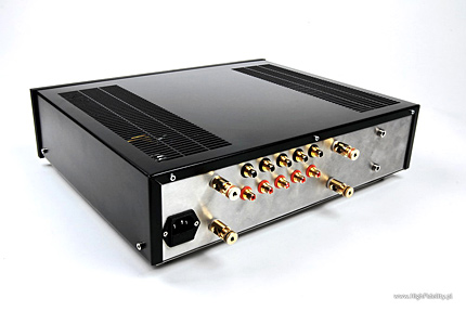 I used passive preamplifier to have as few amplifying stages as possible; it was initially designed with no potentiometer, but after talks with Mr. Sebastian I added a potentiometer, because there is more interest in such designs. When somebody has a dedicated preamplifier, it is best to set my amp at maximum and control volume by the preamplifier. It is worth noticing that the amplifier features innovative protection against short circuit and overheating.