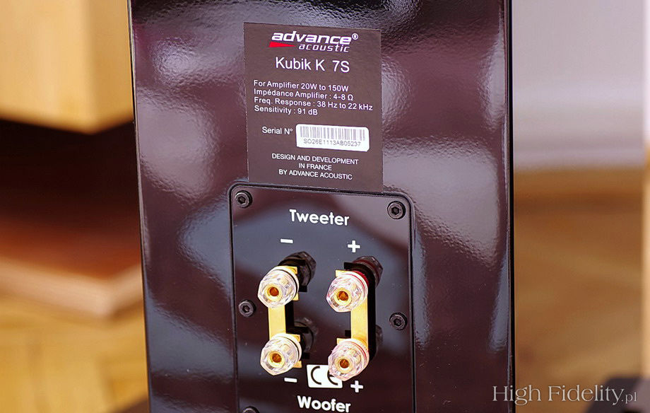 Gdy jednak w końcu po raz pierwszy trafił do mnie do testu produkt tej francuskiej marki okazało się, iż z niewiadomych przyczyn wskaźników takowych jest pozbawiony... :-) Swoją drogą - kolumn, bo właśnie je do testu otrzymałem, z takimi pięknymi wskaźnikami jeszcze chyba nie widziałem – a może byłby to jakiś pomysł na nową linię? Co miałyby wskazywać? Nieważne, nie o to w tym pomyśle chodzi! W razie czego zaklepuję prawa autorskie do takiego rozwiązania. Jakby nie było, pomimo że kojarzony z produktami elektronicznymi, ten francuski producent swoją przygodę z audio rozpoczął właśnie od kolumn, elektronika przyszła później. A już na poważnie – oferta kolumn Advance Acoustic jest dziś już także całkiem spora, a uważni czytelnicy zapewne pamiętają, że Wojtek kilka modeli przetestował, również przedstawicieli najnowszej linii, Kubik S. W teście na pewno był najmniejszy model podłogowy – Kubik K5S, a także K11S, czyli największy przedstawiciel tej linii. Do mnie trafiła druga od dołu podłogówka, bardzo rozsądnie wyceniona i zaskakująco dobrze (zwłaszcza jak na tą cenę) wykonana – model Kubik K7S. Dostępne są także modele podstawkowe oraz, pasujące wzorniczo, kolumny centralne, a nawet subwoofery. Oferta jest więc skierowana zarówno do miłośników systemów stereofonicznych, jak i wielokanałowych i to nie tylko audio, ale i audio-wideo. Kolejne modele podłogówek serii Kubik S to większe wersje poprzednich, z większymi przetwornikami o większej średnicy w rosnących z każdym modelem obudowach. Niezmienny jest jednakże dizajn jako taki – elegancki cokół na regulowanych kolcach, przykręcany 4 śrubami do kolumny. Wszystkie modele mają smukłą sylwetkę, co nie znaczy, że używają jedynie przetworników o niewielkiej średnicy. Woofery basowe, zwłaszcza te w większych modelach, osiągają całkiem słuszne rozmiary, co jest możliwe dzięki instalacji ich w bocznej ściance kolumny. To rozwiązanie daje także teoretycznie dwie możliwości ustawienia kolumn – w wooferami skierowanymi na zewnątrz, bądź do wewnątrz. Producent w instrukcji sugeruje jednakże wyraźnie to drugie rozwiązanie – tak też właśnie testowane kolumny ustawiłem. Z tyłu znajdziemy podwójne terminale głośnikowe firmowo wyposażone w zworki z pozłacanych blaszek. Nie jest to rozwiązanie najlepsze z możliwych, w kolumnach z tego przedziału cenowego jednak normalne. Jak zawsze docelowym użytkownikom sugeruję wymianę blaszek na zworki wykonane z kabelków, bądź po prostu używanie kabli głośnikowych typu bi-wiring. W porównaniu do K5 S testowany model nieco urósł – jest o 6 cm wyższy, 3 cm głębszy, ale szerokość frontu zachował tą samą. Większy o 4 cm (średnicy) jest przetwornik niskotonowy, pozostałe wyglądają na takie same jak w mniejszym modelu. Ogólny kształt kolumny, jak wcześniej już wspomniałem, zastał zachowany, jest jednolity dla całej serii. Do testu otrzymałem parę wykończoną czarnym lakierem piano i muszę przyznać, że prezentowała się ona bardzo elegancko – kolumny wyglądały na pochodzące z wyższej półki niż ta, na której lokuje je ich cena. Dodajmy jeszcze, że kolumny wyposażono w maskownice. Ta frontowa mocowana jest na kołkach, natomiast osobna okrągła dla woofera basowego mocowana jest na wcisk. Oględziny zaliczone na piątkę (jestem starej daty – szóstek nie uznaję), pozostało więc posłuchać, czy brzmienie dorównuje klasą wyglądowi. ![]() Płyty użyte do odsłuchu (wybór):