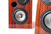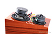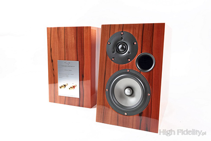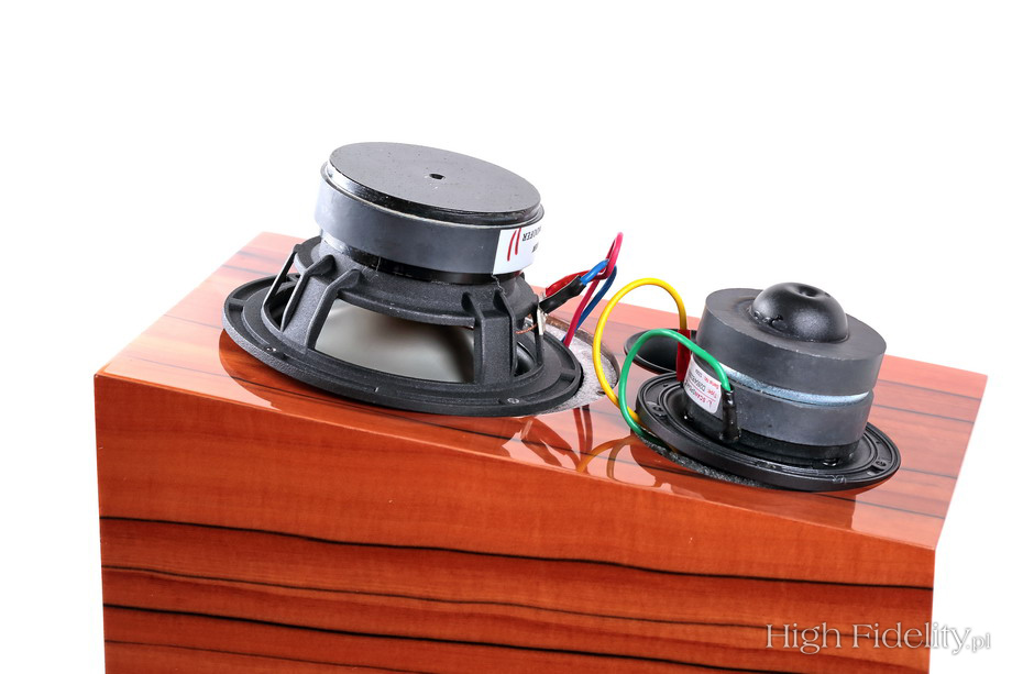 Obudowę wykonano z płyt MDF o grubości 19 mm, oklejonych fornirem z naturalnego drewna. Ścianki przycięto na maszynach CNC pod kątem 45°, ponieważ takie łączenie daje lepszą stabilność mechaniczną w czasie. Wewnątrz wzmacniana jest poprzeczką łączącą boczne ścianki. Wytłumienie dobrano eksperymentalnie – najlepiej współpracowały z sobą maty bitumiczne i filc oraz włóknina z dodatkiem wełny owczej. Zamocowana na tylnej ściance zwrotnica oto układ 2. rzędu (12 dB/okt.) typu Linkwitz-Riley. Znajdziemy w niej wyrafinowane podzespoły: foliowe, polipropylenowe kondensatory Jantzen Audio i Mundorf (w sekcji wysokotonowej) oraz ładne cewki – zarówno powietrzne, jak i rdzeniowe, z rdzeniem proszkowym. Zwrotnicę zmontowano na płytce MDF metodą punkt-punkt, bez pośrednictwa płytki drukowanej. Połączenia wewnętrzne wykonano kablami Cardasa. Tej samej firmy są zaciski głośnikowe, które wkręcono do dużej, naklejonej na tylniej ściance, płytki znamionowej. Są one bardzo ładne i wygodnie się nimi operuje. ![]() Dane techniczne (wg producenta) Pasmo przenoszenia: 40 Hz - 20 kHz ![]() CANTATE DOMINO