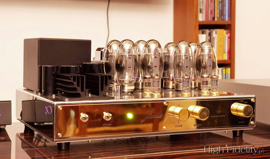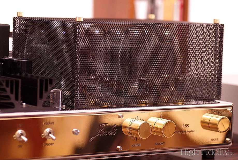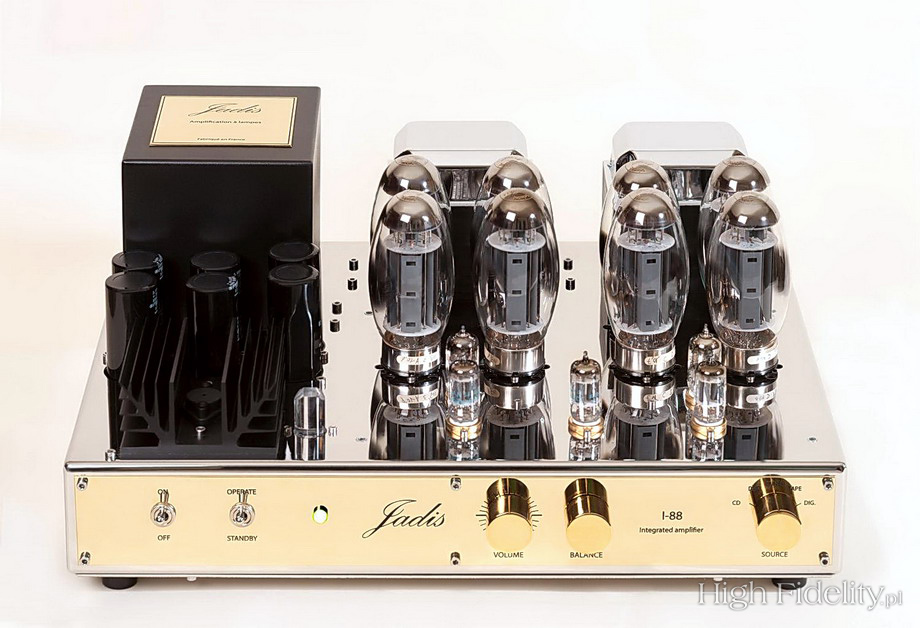 Większość wzmacniaczy z logo Jadis pracuje w klasie A w układzie push-pull, ale w ofercie znajdziemy również urządzenia typu SET („single-ended triode”). Firma słynie z ręcznie nawijanych traf, którym jej produkty w dużej mierze zawdzięczają wysokiej próby brzmienie, jak i z charakterystycznego wyglądu. Złotego frontu z gałkami w tym samym kolorze i lustrzanej powierzchni górnej płyty po prostu nie da się pomylić z produktem żadnej innej marki. Swego rodzaju specjalnością Francuzów są układy z lampami z rodziny KT. W przypadku wielu wzmacniaczy można wybierać między kilkoma modelami z tetrodami stumieniowymi, począwszy od (wyjątkowo nielubianej przeze mnie) KT88, przez KT90, po KT120, ale także bliskiej (konstrukcyjnie, bo brzmieniowo niekoniecznie) kuzynki – 6550. Nawet jeśli pierwszej z tych lamp nie lubię, to w muszę przyznać, iż w wydaniu Jadisa nawet ona potrafi zabrzmieć muzykalnie. Nie zmienia to faktu, że osobiście za każdym razem gdy miałem okazję słuchać jednego z wzmacniaczy (nie tylko Jadisa) wolałem każdą z pozostałych opcjonalnych lamp. Firma na przestrzeni lat zyskała sobie grono wiernych fanów, bliskich mojemu sercu, muszę dodać, bo to właściwie zawsze melomanii kochający muzykę, szukający w brzmieniu prawdziwych emocji, a nie hardcorowi audiofile, dla których ważny jest dźwięk jako taki, czy wyśrubowane parametry – w których nie ma niczego złego, pod warunkiem, że są środkiem do celu, a nie celem samym w sobie. A czego jak czego, ale emocjonalnego angażowania słuchaczy produktom Jadisa odmówić na pewno nie można. Gdy kilka lat temu firma Tungsol wprowadziła na rynek zupełnie nową lampę mocy KT150, co samo w sobie jest przecież wydarzeniem dość rzadkim w dzisiejszych czasach, to właśnie Jadis był jednym z pierwszych producentów (obok Ayona), którzy wykorzystali ją w swoim wzmacniaczu – I-50, który miałem okazję testować. Od tego czasu pojawiło się już trochę produktów z tymi bańkami na pokładzie (choćby ARC i Octave), ale to Jadis zapisał się jako jeden z pionierów. Na tej jednej próbie się nie skończyło. W ubiegłym roku na wystawie w Paryżu francuska firma pokazała prototyp nowego wzmacniacza zintegrowanego, oznaczonego symbolem I-88. Jak zwykle w przypadku takich wczesnych premier trochę czasu musiało minąć zanim pojawiły się pierwsze egzemplarze produkcyjne. Jak powiedział mi pan Sebastian Kienitz z firmy Grobel Audio, trafiła do mnie pierwsza z tych sztuk i to jeszcze przed wystawą Audio Video Show 2015, na której miała miejsce premiera tego urządzenia. Słowem to jest (wszystko na to wskazuje) pierwszy test I-88 na świecie. Też jestem podekscytowany! Symbol tego wzmacniacza może być nieco mylący – w przypadku francuskiej marki wydaje się bowiem sugerować, że zastosowano w nim lampy KT88. Tymczasem jest to nawiązanie do innej integry – DA-88S. Gdy spojrzeć na zdjęcia obu wzmacniaczy łatwo jest zauważyć ogromne podobieństwo – na dobrą sprawę wymienić można jedynie drobne różnice: kolor kondensatorów, obudów traf. No i nie da się nie zauważyć, że w DA-88S stosowane są jedne ze starszych lamp (KT88, 90, 120 lub 6550), a w I-88 znajdziemy KT150. Front urządzeń jest identyczny, lampy umieszczono w takim samym układzie, te same są wymiary, a nawet waga. Pokrewieństwo musi więc być bardzo bliskie, a główny wyróżnik to właśnie lampy mocy. Ta nowa lampa (dokładniej po cztery sztuki na kanał) pozwala osiągnąć testowanej integrze moc 90 W na kanał (w klasie A), czyli o połowę więcej niż DA-88S (2 x 60 W). Dzięki takiej mocy jest ona w stanie wysterować naprawdę sporo kolumn w tym te całkiem trudne do napędzenia. ![]() Płyty użyte do odsłuchu (wybór):