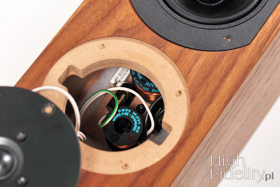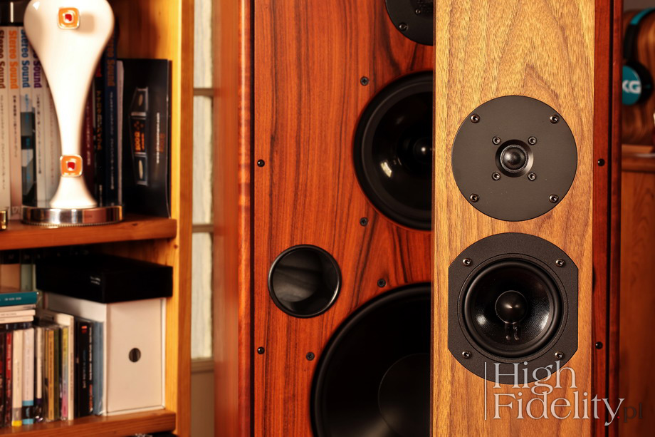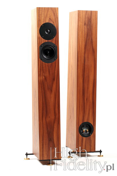 Zaciski głośnikowe są częścią plastikowej wytłoczki, wpuszczonej w głąb obudowy – przykręcono je wkrętami, które przebiły się na drugą stronę. W klasycznej kolumnie nie byłoby tego widać, ale tutaj już tak. Gniazda, choć wyglądają niepozornie, zostały wybrane ze względu na sposób konstrukcji – to miedź pokryta bezpośrednio złotem. Połączenia wewnętrzne wykonano miedzianą plecionką. Obudowa jest lekka, ale bardzo sztywna, w czym pomaga, umieszczona wewnątrz, pionowa płyta MDF, będąca częścią konstrukcji tuby. Wnętrze wytłumiono tylko w górnej części tuby, sztuczną wełną. Nie przewidziano maskownic. Bardzo ładne, mające klasę kolumny. ![]() Dane techniczne (wg producenta) Materiał obudowy: MDF ![]() Dystrybucja w Polsce: ![]() SŁAWEK JASKUŁKE