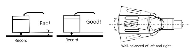 alibracja gramofonu to jedno z trudniejszych zagadnień świata audio. Niby wszystko jest jasne od lat, to tylko mechanika, czyli prosta geometria, a jednak możliwości w dopuszczalnych ramach są szerokie. Co do kilku rzeczy eksperci zdają się mówić jednym głosem: trzeba osiągnąć określony rozkład rezonansów w układzie ramię-wkładka, napęd powinien mieć maksymalnie równe i stabilne obroty, powinien być także odsprzęgnięty od głównego łożyska, a ramię powinno mieć minimalne tarcia w punktach podparcia i być maksymalnie sztywne. Ta ostatnia uwaga dotyczy całego ramienia, także jego główki.