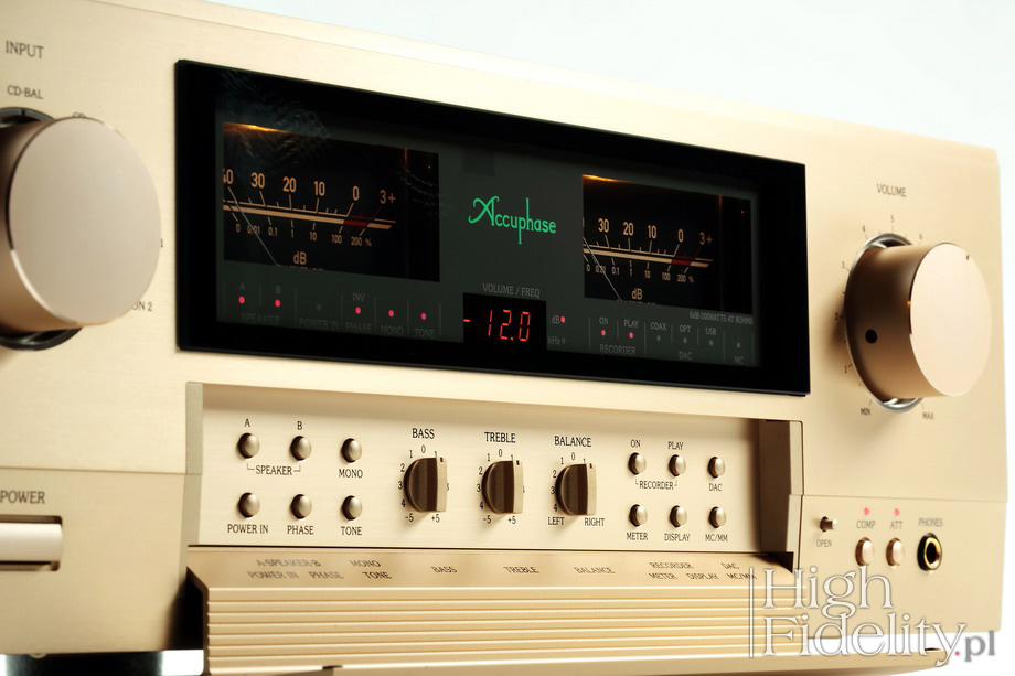 firmie Accuphase napisaliśmy już tyle, że chyba każdy zna na pamięć cechy charakterystyczne jej produktów, jak: nawiązujący do lat 70. XX wieku design, złote ścianki przednie, niesamowicie dopracowana budowa, wydajne zasilanie, wysokie tłumienie wyjścia, niskie zniekształcenia i szumy, a także fantastyczna funkcjonalność. Od lat Japończycy proponują też swoje własne opracowania, na przykład AAVA (Accuphase Analog Vari-gain Amplifier), układ regulacji poziomu dźwięku, stosowany w miejsce klasycznego tłumika oporowego. W jej katalogu znajdziemy zarówno wzmacniacze zintegrowane, przedwzmacniacze i wzmacniacze mocy, jak i odtwarzacze CD i SACD, „daki” oraz kondycjonery, korektory akustyki i cyfrowe zwrotnice. jej oferta obejmuje również wkładkę gramofonową, a wisienką na torcie jest analogowy tuner radiowy FM.
