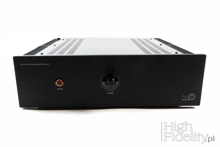 Przód i tył Front, wykonany przez wrocławską firmę EX-OR, jest zresztą niesamowicie minimalistyczny, co mu na dobre wychodzi – to tylko jedna, niewielka gałka (siły głosu) oraz solidny wyłącznik „StanBy” z pomarańczową obwódką. Opcjonalny jest sterownik do wzmacniacza. Dostaniemy go za 400 zł. Umożliwia sterowanie siłą głosu i – jeśli wzmacniacz jest w nie wyposażony – zmianę wejść. Konstruktor samodzielnie oprogramował jego odbiornik, dzięki czemu odbiornik reaguje na sygnał nawet wtedy, kiedy pilot nie jest skierowany na wzmacniacz. Sam pilot jest plastikowy, brzydki i niefunkcjonalny. Za coś lepszego trzeba by jednak sporo dopłacić. Dodajmy, że sterownik w urządzeniu potrafi się „uczyć” kodów pilota. Klient może więc wykorzystać swój ulubiony pilot, a ludzie z SinusAudio zaprogramują mu go pod kątem tego konkretnego wzmacniacza.