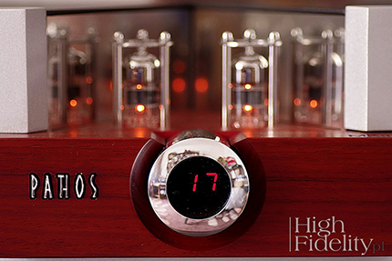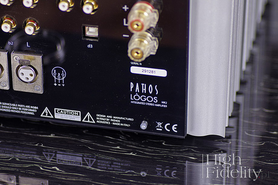 To pokazało, że nawet jeśli Pathos należy do gatunku urządzeń audio delikatnie, ale jednak, upiększających rzeczywistość nagrań to potrafi je dobrze różnicować. I rzecz nie tylko w różnicowaniu tak kompletnie inaczej zrealizowanych albumów jak Treme i Dżem akustycznie, ale również w umiejętności różnicowania sposobu prezentacji poszczególnych instrumentów w obrębie tego samego kawałka. Bo na Detoxie gitary wypadają równie znakomicie jak na innych numerach, a stopa perkusji wydaje się być nawet twardsza (a to dobrze) niż wcześniej, więc słabość dotyczy tylko saksu i harmonijki, co zostało bardzo dobrze pokazane. Kablologia Zwykle tego nie robię, ale tym razem zrobiłem wyjątek i w czasie testu zamieniłem całe okablowanie na nie swoje. Na swoje usprawiedliwienie powiem, że odsłuchiwane w różnych konfiguracjach już od dobrego miesiąca – mowa o Red Eye Ultimate polskiej firmy KBL Sound. Jedną z cech tego zestawu (IC + głośnikowy + sieciówki) jest znakomita scena, w tym wyjątkowa głębia prezentacji wsparta bardzo dobrym, trójwymiarowym obrazowaniem źródeł pozornych. Jak, mam nadzieję, wyczytaliście już państwo powyżej, to również mocna strona Pathosa. Polskie kable wzmocniły więc tą cechę prezentacji, sprawiając, że poszczególne elementy na scenie zostały precyzyjniej opisane i zlokalizowane, zwiększyły się nieco odległości między nimi wypełnione pięknie powietrzem. Jeszcze ciekawszym efektem zastosowania tego zestawu kabli był wyraźnie bardziej zwarty, bardziej energetyczny i pewniej prowadzony bas, przynajmniej w nagraniach, gdzie tak go zarejestrowano. Teraz więc już także i elektryczny bas brzmiał naprawdę dobrze – schodził nisko, z dobrym dociążeniem, był też bardziej zwarty, szybszy. Z dużo większą frajdą mogłem posłuchać choćby Marcusa Millera na Tutu, czy jego własnych płytach. Szybszy, bardziej zwarty atak, świetne podtrzymanie i zdecydowane wytłumienie każdego dźwięku, gdy zachodziła taka potrzeba. No i dociążenie basu aż po najniższe dźwięki robiło duże wrażenie. Teraz także już nie tylko nieprzesadnie dynamiczne i szybkie Dire Straits, ale i bardziej rockowe Aerosmith dawało mi dużo frajdy. Wokal Stevena Taylora zrobił się kapkę bardziej drapieżny, gitarowe riffy do mięsa, które było już wcześniej, dołożyły ową nutkę surowości, czasem nawet ostrości, niezbędne elementy rockowego wiosła. Oczywiście nawet z tymi kablami Logos mkII nie stał się wymarzonym wzmacniaczem dla fanów heavy metalu, ale już miłośnicy starszego rocka, Zeppelinów, Floydów, Rush, itd., będą dzięki włoskiej integrze czerpać ogromną przyjemność z obcowania ze swoimi idolami. Podsumowanie Pathos Logos mk II to urządzenie piękne (choć to oczywiście rzecz gustu) i pięknie grające. Nie jest to co prawda w pełni uniwersalna maszyna, bo lepiej czuje się w repertuarze akustycznym i wokalach i przy takiej muzyce konkurować mogą z nim raczej dobre wzmacniacze lampowe niż tranzystory. Świetne brzmią z nim choćby instrumenty dęte, ale i gitarom akustycznym niczego nie mogłem zarzucić. Wokale są pełne, z wyraziście podaną fakturą, ekspresyjne i namacalne. Ekspresja jest w ogóle mocną stroną tego wzmacniacza – świetnie potrafi dzięki temu budować klimat nagrań, a koncerty, zwłaszcza te z małych klubów, z dużym udziałem publiczności wypadają wręcz spektakularnie przenosząc słuchacza wprost między szalejących fanów. Gdy da się Pathosowi szansę i uważnie dobierze resztę toru – przede wszystkim neutralne, transparentne źródło i podobne kable, to jego uniwersalność mocno wzrośnie. Rock, czy elektryczny blues zabrzmią w sposób, od którego - za sprawą dobrego timingu, pewnie prowadzonego rytmu, mocnej, dobrze kontrolowanej podstawy basowej, ale i umiejętności pokazania odrobiny drapieżności i rockowego „brudu” - trudno się oderwać Logos mkII nie jest może mistrzem dynamiki, a bas w jego wykonaniu jest raczej mięsisty, dociążony i kolorowy niż nadzwyczajnie szybki i konturowy, ale taka jest jego „uroda”, to dlatego właśnie jest to urządzenie dla osoby, która po prostu chce sobie usiąść a lampką dobrego wina, puścić ulubioną muzykę i zapomnieć na te kilkadziesiąt minut o całym świecie. Dzieje się tak również dlatego, że średnica potrafi zachwycić gładkością, namacalnością i dociążeniem, a i na górze pasma dzieje się sporo, acz raczej, o ile nie wrzucimy jakiegoś wyjątkowo paskudnego nagrania, nasze uszy są bezpieczne, nie będą bowiem agresywnie atakowane żadnymi wyostrzeniami. Przy tym wszystkim testowana integra bardzo dobrze radzi sobie z różnicowaniem nagrań oraz elementów wewnątrz danego nagrania. Dzięki temu, choć zwykle brzmi pięknie i wciągająco, to nie jest nudna, zawsze chce się więcej. ![]() Pathos Logos mkII to wzmacniacz zintegrowany oferujący sporą moc, 110 W przy 8 Ω, podwajaną przy 4 Ω. Jest to tzw. konstrukcja hybrydowa. Sekcję przedwzmacniacza oparto na dwóch lampach ECC88 (6922). Jego tor jest w pełni zbalansowany, a całość i pracuje w klasie A. W sekcji wyjściowej natomiast, w klasie AB, pracują trzy pary MOSFET-ów na kanał. Wzmacniacz wyposażono w dwa analogowe wejście XLR oraz pięć RCA. Dodatkowo do dyspozycji użytkownika oddano wyjście pre-out, oraz monofoniczne wyjście na subwoofer. Opcjonalnie do wzmacniacza można zamówić montowany w środku moduł HiDaca wyposażony w dwa wejścia S/PDIF (koaksjalne) oraz port USB (typ B). DAC potrafi obsłużyć sygnał PCM o rozdzielczości do 24 bitów i 192 kHz. Zamiast potencjometru producent zastosował sterowaną cyfrowo analogową drabinkę rezystorową Burr Brown PGA2310 umożliwiającą regulację głośności w 100 krokach. Głośność można regulować za pomocą pilota zdalnego sterowania bądź dużego, chromowanego pokrętła wkomponowanego w front ur