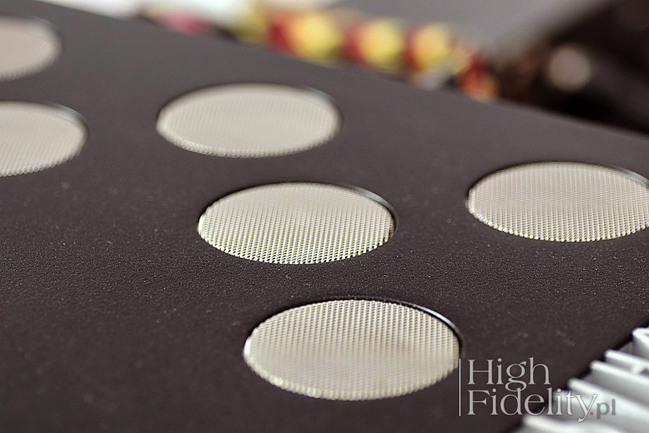 Po prawej stronie od pokrętła głośności, w niewielkich zagłębieniach w aluminiowym froncie umieszczono dwa niewielkie przyciski łamiąc w ten sposób symetrię całego dizajnu, co, moim zdaniem, dodaje mu jeszcze uroku. Włosi najwyraźniej nie uznają słowa pisanego, jako że przyciski na froncie, podobnie jak 6 przycisków, w który wyposażono bardzo ładnego, drewnianego pilota, są nieopisane. Dopóki człowiek nie nauczy się co do czego służy używanie pilota może być więc nieco frustrujące. Acz jego uroda w pewnym stopniu to wynagradza. Tył urządzenia jest w dużym stopniu zajęty pogrupowanymi gniazdami. Solidne gniazda głośnikowe umieszczono blisko prawej i lewej krawędzi. Gniazdo IEC oraz główny włącznik urządzenia (malutki, hebelkowy) umieszczono w lewym dolnym rogu. Centralnie w dolnej części panelu zlokalizowano dwa wejście XLR, a nad nimi wejścia i wyjścia RCA, z wyraźnie oddzielonym pre-out. Na prawo od nich znajduje się sekcja cyfrowa – urządzenie jest bowiem na stałe wyposażone w wejścia S/PDIF i USB niezależnie od tego, czy w środku znajduje się moduł HiDACa czy nie. Odległości między gniazdami są wystarczające, by można było podpiąć nawet łączówki z dużymi wtykami. ![]() Dane techniczne (wg producenta) Moc wyjściowa: 2 × 110 W RMS/8 Ω (przy obu kanałach obciążonych) ![]() Dystrybucja w Polsce: |