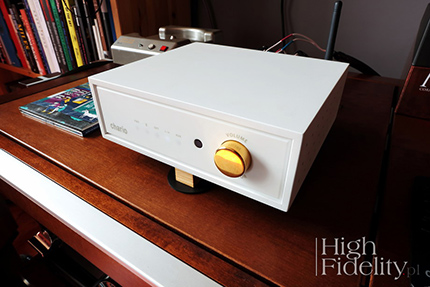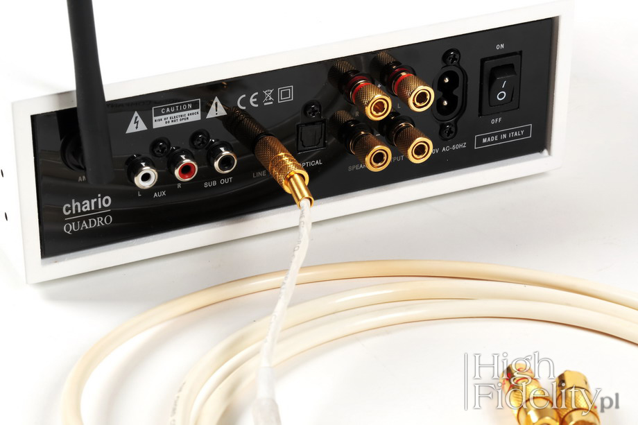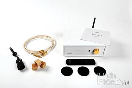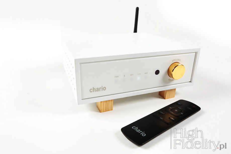 Kiedy dokładnie rok temu recenzowaliśmy kolumny Chario Reflex Prima, były dla nas sporym zaskoczeniem. Zaskakiwały niebanalnym projektem plastycznym, ciekawym podejściem do akustyki, a przede wszystkim ceną. Za parę dużych, świetnie wyglądających, wyprodukowanych we Włoszech kolumn trzeba było zapłacić naprawdę niewiele. Być może było to kwestią czasu, ale seria Reflex została rozbudowana o urządzenie elektroniczne. To odważny krok dla firmy, która nawet w swojej nazwie (Chario Loudspeaker) ma „zapisaną” specjalizację. Może więc dobrze, że pierwszy tego typu produkt, wzmacniacz zintegrowany Quadro, należy do podstawowego przedziału cenowego. Można bowiem zapomnieć o wzniosłych ideach, niemal nigdy nie realizowanych, o głębokich przemyśleniach, rzadko kiedy wykorzystywanych i skupić się na tym, co najważniejsze: projekcie plastycznym, funkcjonalności i dźwięku. Już to zasygnalizowałem: włoski wzmacniacz(-yk) wygląda obłędnie. W oklejonej sztuczną, białą okleiną drewnianej obudowie mamy mleczną, ściankę przednią z półprzezroczystego Corianu z punktami białego światła, sygnalizującymi wybrane wejście. Obok jest pojedyncza, złocona, gałka, która służy zarówno do regulacji siły głosu, jak i do zmiany wejść. Chario nazywa ten produkt „wzmacniaczem Bluetooth” („Bluetooth Amplifier”). To pewne nadużycie, ale usprawiedliwione podobnymi działaniami producentów odtwarzaczy SACD, nazywającymi je „odtwarzaczami CD/SACD”, odtwarzaczy CD z wejściami cyfrowymi, o których mówi się „odtwarzacz CD/DAC” i przetworników cyfrowo-analogowych, nazywanych „przetwornikami cyfrowo-analogowymi USB”. Nadużycie polega na opisaniu urządzenia cechą, na którą chciałoby się zwrócić uwagę. „Wzmacniacz Bluetooth” mówiłby więc w tym przypadku o obecności odbiornika Bluetooth z kodekiem AptX i co za tym idzie DAC-a. A to jasno wskazuje krąg odbiorców, do których ten produkt jest skierowany – to ludzie korzystający ze smartfonów, tabletów i laptopów. Podkreślono to zresztą napisem na pudełku: „Chario Lifestyle Collection”. Chyba po raz pierwszy dostaną produkt znanej, uznanej firmy, o znakomitym projekcie plastycznym i dobrej funkcjonalności. Oprócz odbiornika Bluetooth, sygnalizowanego antenką na tylnej ściance, mamy bowiem cyfrowe wejście optyczne TOSLink, dwa wejścia liniowe, w tym jedno na mini-jacku 3,5 mm oraz wyjście RCA dla subwoofera. Wejście cyfrowe akceptuje sygnał do 24 bitów i 192 kHz. Jak widać, ma to być serce niewielkiego, być może nawet „biurkowego” zestawu, do którego można podłączyć komputer stacjonarny, odtwarzacz Blu-ray i ew. dodatkowe źródło analogowe – być może gramofon (RCA), a jako drugie przenośny odtwarzacz plików (mini-jack). Jedyne, czego mi zabrakło, to wyjścia słuchawkowego i wskazania poziomu siły głosu. Gałka sprzężona jest z enkoderem, a nie potencjometrem, nie ma więc znaczenia, jak bardzo jest odkręcona, bo i tak nie wskazuje realnej głośności. Zapewne niektórzy będą też pytali o wejście USB – za tak nieduże pieniądze nie dostaniemy jednak wszystkiego, co byśmy sobie wymyślili. Funkcjami wzmacniacza można sterować również za pomocą niewielkiego, zgrabnego pilota zdalnego sterowania. Znajdują się na nim nie tylko guziki do zmiany wejść i siły głosu, jak również do sterowania odtwarzaniem muzyki z urządzenia Bluetooth; to start/pauza i przewijanie w przód i tył. Urządzenie pobiera niewiele mocy, co wskazuje na pracę końcówek w klasie D. Po 15 minutach bez sygnału wejściowego przechodzi w tryb standby. ![]() Chociaż Quadro przeznaczony jest dla młodszych użytkowników, został potraktowany jak pełnoprawny, pełnowymiarowy wzmacniacz. Zagrał więc w systemie odniesienia z kolumnami Harbeth M40.1. Uzupełnieniem odsłuchu był czas spędzony z kolumnami Castle Richmond Anniversary Edition. Sygnał doprowadzany był z odtwarzacza CD kablem The Chord Company zakończonym wtykiem mini-jack. Łącze Bluetooth wypróbowałem korzystając z laptopa HP Pavilion dv7 i smartfona Samsung Core. Wzmacniacz dostarczany jest z kablem sieciowym zakończonym wtykiem tzw. „ósemką”; w teście zastosowałem przejściówkę na IEC i kabel sieciowy Tellurium Q Ultra Silver. Wzmacniacz stanął na niewielkich podstawkach z drewna Hickory Cube Insulator HQ-4 firmy Acoustic Revive. ![]() Płyty użyte do testu (wybór)