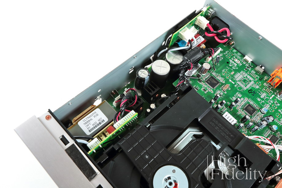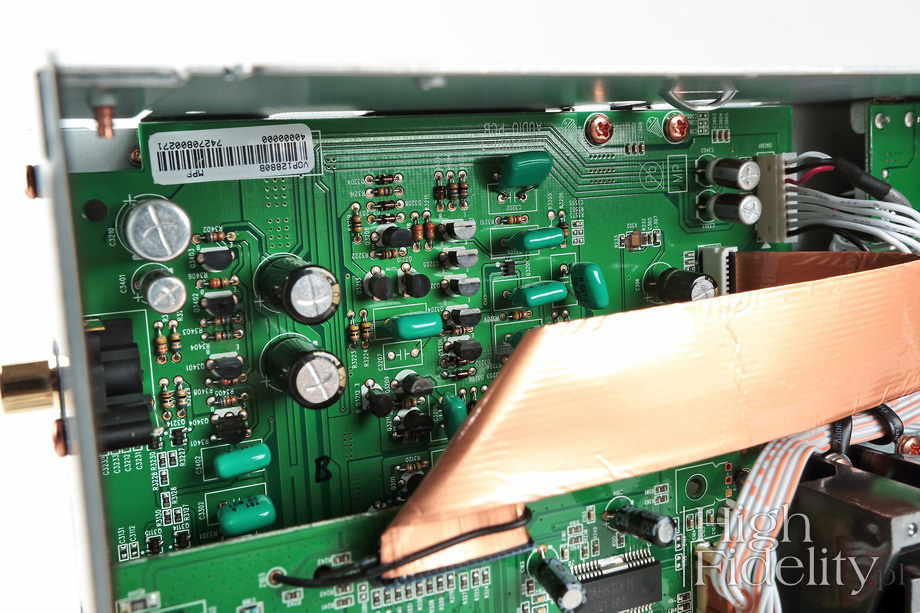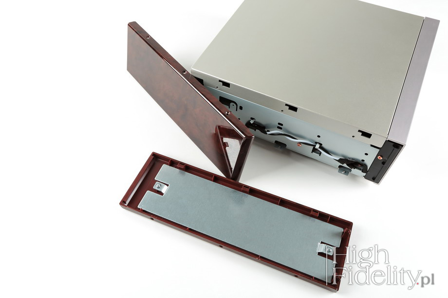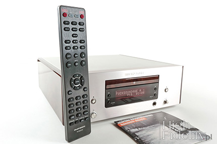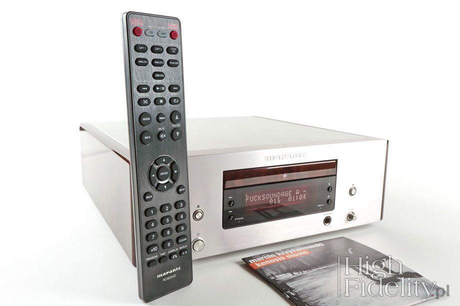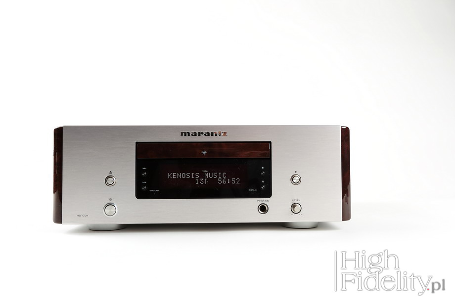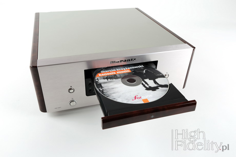 Pomimo że to niewielkie urządzenie, to i tutaj poszerzający jego funkcjonalność wzmacniacz słuchawkowy potraktowano poważnie. Co słychać. Dźwięk jest rozdzielczy i bardzo ładnie nasycony. Podstawowe cechy dźwięku, które słyszałem przez kolumny, pozostają. Mamy więc rytm, spójność, jest w tym sens. Nie spodziewajmy się też niskiego basu, chyba, że podłączymy do niego słuchawki, w których jest on celowo poszerzony. Dochodzi do tego jeszcze lepsza przejrzystość i rozdzielczość. Okazuje się, że zmiana wzmocnienia nie jest zaledwie remedium na słuchawki, które wymagają wyższego poziomu wyjściowego. To funkcja, która realnie dopasowuje wzmacniacz do słuchawek. Przechodząc pomiędzy trzema ustawieniami ich dźwięk zmienia się radykalnie, przede wszystkim pod względem barwy. Wzmacniacz jest mocny, to trzeba przyznać. Wysterował ultratrudne HiFiMANy HE-6 do godziwych poziomów. Ale z niedrogimi Y50 firmy AKG było jeszcze ciekawiej – wystarczyło ustawić minimalne wzmocnienie. Dlatego nie szukałbym zewnętrznego wzmacniacza słuchawkowego, nie ma to większego sensu. Ten wbudowany do HD-CD1 w zupełności wystarczy zarówno do słuchania Mozarta i Beethovena, jak i TWENTY ØNE PILØTS. Podsumowanie Lubię takie urządzenia. Są dla ludzi, a nie tylko dla audiofilów. Ci ostatni powinni go posłuchać, bo to może być znakomity dodatek do systemu opartego na tak różnych konstrukcjach (a przecież absolutnie i dogłębnie audiofilskich), jak Fezz Audio Silver Luna, Advance Acoustic X-i125 , Clones Audio 25iR i SinusAudio HYBRID CLASS A. To bardzo wszechstronny odtwarzacz, który ładnie pokazuje, dlaczego ten format wciąż ma sens, nawet na tym poziomie cenowym. A może zresztą właśnie na tym poziomie cenowym? Nie ma najmniejszych szans, żeby odtwarzacz plików za, powiedzmy, 3000-4000 zł zagrał równie dobrze – najmniejszych. Nawet z najbardziej wyśrubowanym hi-res. To wciąż technika, która szuka rozwiązań, podczas kiedy Compact Disc znalazł je dawno temu. Nawet więc, jeśli macie w systemie streamer – posłuchajcie w nim HD-CD1, chociażby żeby wiedzieć, w którym miejscu jesteście. A dostaniecie gratis świetny wzmacniacz słuchawkowy, którego jedyną wadą jest to, że jest ograniczony tylko i wyłącznie do tego urządzenia. RED Fingerprint. ![]() HD-CD1 jest solidnym, ciężkim, ładnie wykonanym odtwarzaczem Compact Disc. Poza klasycznymi płytami CD, w postaci CD-Audio, CD-R i CD-RW odtwarza także nagrywalne płyty z plikami zakodowanymi w mp3, ACC, WMA i WAV. To dzięki nim transport urządzenia obsługuje CD-Text, chociaż nie znajdziemy na nim informującego o tym loga. Przód i tył Szerokość przedniej ścianki odtwarzacza wynosi 304 mm, mamy więc do czynienia z urządzeniem typu „midi”. Wykonano ją z drapanego aluminium, a pośrodku umieszczono plastikową płytkę, częściowo czarną, pod którą umieszczono wyświetlacz. Jest on nieco większy niż zazwyczaj, choć bez przesady, i jest to klasyczny wyświetlacz dot-matrix, z dwoma linijkami. Na dolnej wyświetlany jest czas utworu i jego numer, a na górnej teks towarzyszący płycie i utworowi, jeśli oczywiście wydawca takowy przewidział. Obok jest jeszcze mały znaczek pokazujący, czy odtwarzacz czyta płytę. Na zaczernionej części płytki umieszczono malutkie przyciski stopu, pauzy i przerzucania utworów. Są tutaj również dwie czerwone diody LED. Jedna mówi o tym że wyświetlacz został wyłączony, a druga o tym, że odtwarzacz przeszedł w tryb „uśpienia”. Ten może być ustawiony w menu – jeśli płyta nie jest odtwarzana Marantz wyłącza się po ustalonym czasie; funkcję tę można jednak pominąć i wówczas zawsze będzie włączony. Nad wyświetlaczem mamy szufladę transportu. Jej front pokryto elementem, który wygląda jak drewno. Jest on niezwykle podobny do tych, które znajdziemy w samochodach nieco wyższej klasy – ta sama faktura, połysk itd. Zresztą i boki wyglądają jak z drewna. Ale tylko wyglądają. To odlewy ciśnieniowe z plastiku z odpowiednim wykończeniem. Wewnątrz wzmacniane są grubymi blachami. Dodajmy, że front mieści jeszcze przyciski play, wysuwania płyty oraz standby i gniazdo słuchawkowe typu „duży jack” fi 6,3 mm, a obok jest maleńka gałka siły głosu. Tył przypomina to, co znamy z odtwarzaczy CD z ostatnich 15 lat. To stereofoniczna para gniazd RCA z sygnałem analogowym, gniazdo RCA z cyfrowym S/PDIF i optyczne TOSLink. Obok są dwa gniazda RCA służące do komunikacji między urządzeniami Marantza. Gniazdo sieciowe ma tylko dwa piny, nie ma pinu dla przewodu ochronnego. Środek Obudowa jest bardzo solidna i podwójna, przypominając to, co oferuje – na wyższym poziomie, ale chodzi o zasadę – Accuphase. Żeby dostać się do wnętrza trzeba najpierw odkręcić boki, potem dopiero górną ściankę. Wszystkie śruby zostały pomiedziowane, co bardzo ładnie wygląda. Wnętrze jest szczelnie wypełnione. Pośrodku, na podstawie z wygiętej blachy, przykręcono transport. To jednostka o symbolu CJDKT690JP i wygląda na to, że to CD-ROM, inaczej nie umiałby przeczytać plików, a jedynie płyty CD-DA. Sprawdzony został już wcześniej, w pełnowymiarowych odtwarzaczach Marantza: CD5005, CD6005 i CD7005 (w SA8005 jest napęd DVD, ponieważ to odtwarzacz SACD). Firma mówi o nim „extra-reliable CD transport mechanism”, wskazując na to, że można na nim polegać przez dłuższy okres czasu. Jego szuflada pracuje całkiem cicho i ma dobrze dobraną prędkość zamykania i otwierania. Sygnał niego trafia do płytki z układami sterującymi wyjściami cyfrowymi i łączem komunikacyjnym, a potem na dół. Tam znajdziemy kość właściwego przetwornika: wielobitowy układ Cirrus Logic CS4398. Na głównej płytce są też układy analogowe. Inaczej niż z większości urządzeń tego typu, nawet bardzo drogich, nie ma tutaj wzmacniaczy operacyjnych (scalonych),